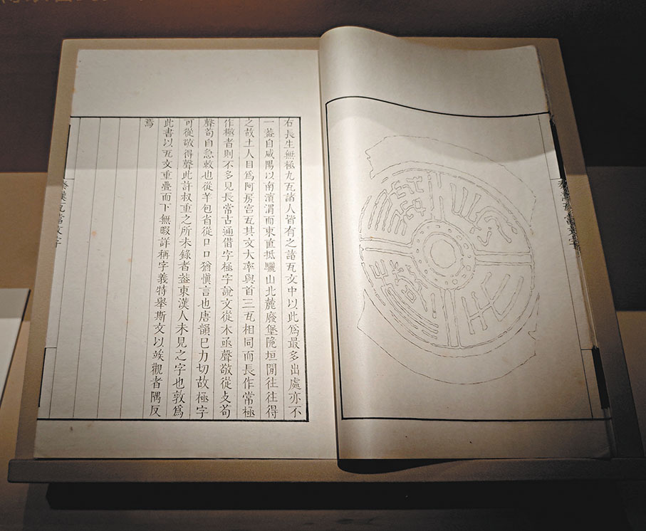 就如同在文學領域一樣,魯迅在美術領域也有自己獨到的見解,對美術的熱愛促使他在整個人生中不斷研究、精進與實踐。魯迅留存的手跡中常見手繪配圖,很多創刊封面、著譯封面也多由他自己設計。展覽中有一本《秦漢瓦當文字》,是他1915年根據程敦本進行影摹成冊,書中摹繪的瓦圖有114幅、手跡有71頁,每種圖後都附有詳細的考證資料。魯迅完全按照影印書籍的字體、裝幀形式來臨摹,線條細緻純熟,十分精美。