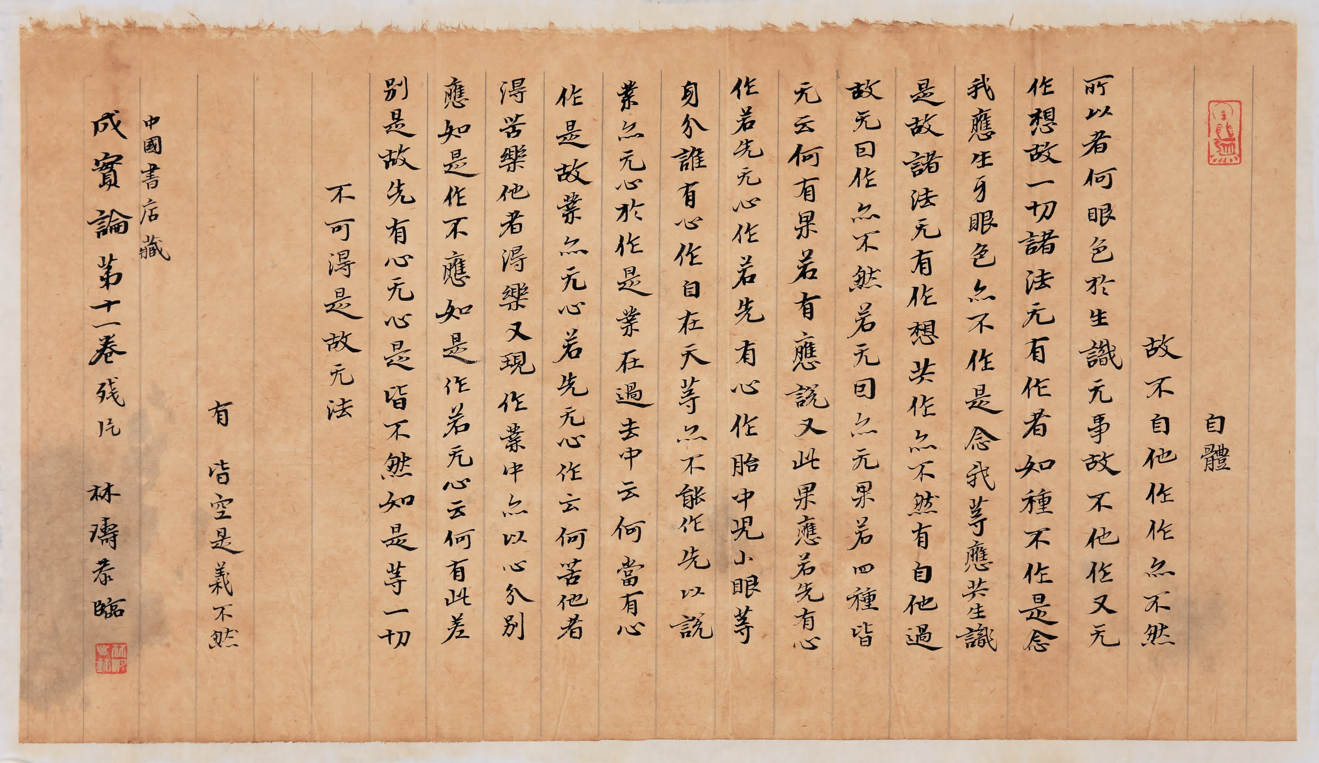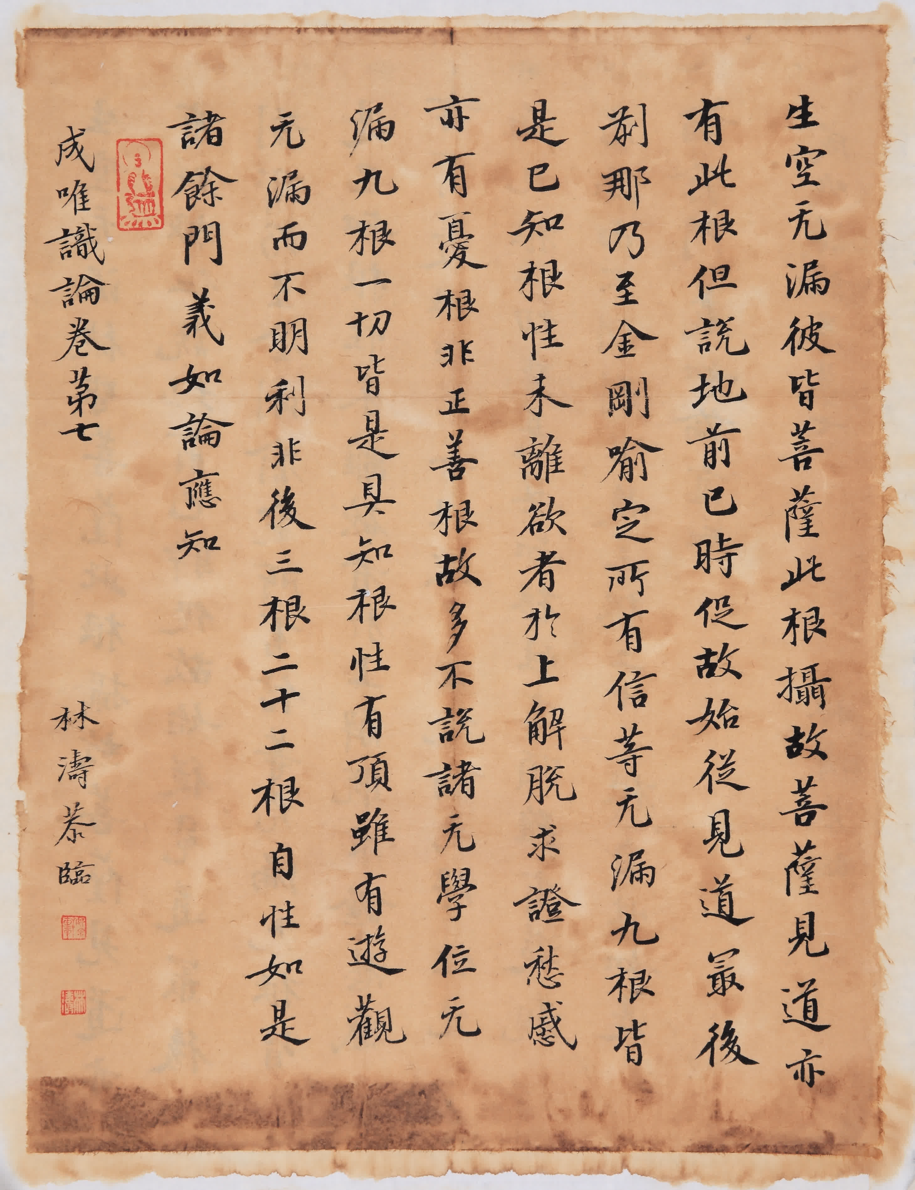 敦煌藏經洞發現的寫經,歷史從4世紀到11世紀,橫跨700年之久,以佛經為主。在中國書法史上,敦煌寫經書法具有鮮明的時代特色和地域風格,「敦煌寫經讓我了解到魏晉南北朝至北宋時期的書法墨跡,從而能在書寫的過程中,感受到當時的中國書法發展歷程。」林濤如此闡釋他書寫「敦煌寫經」的初衷。