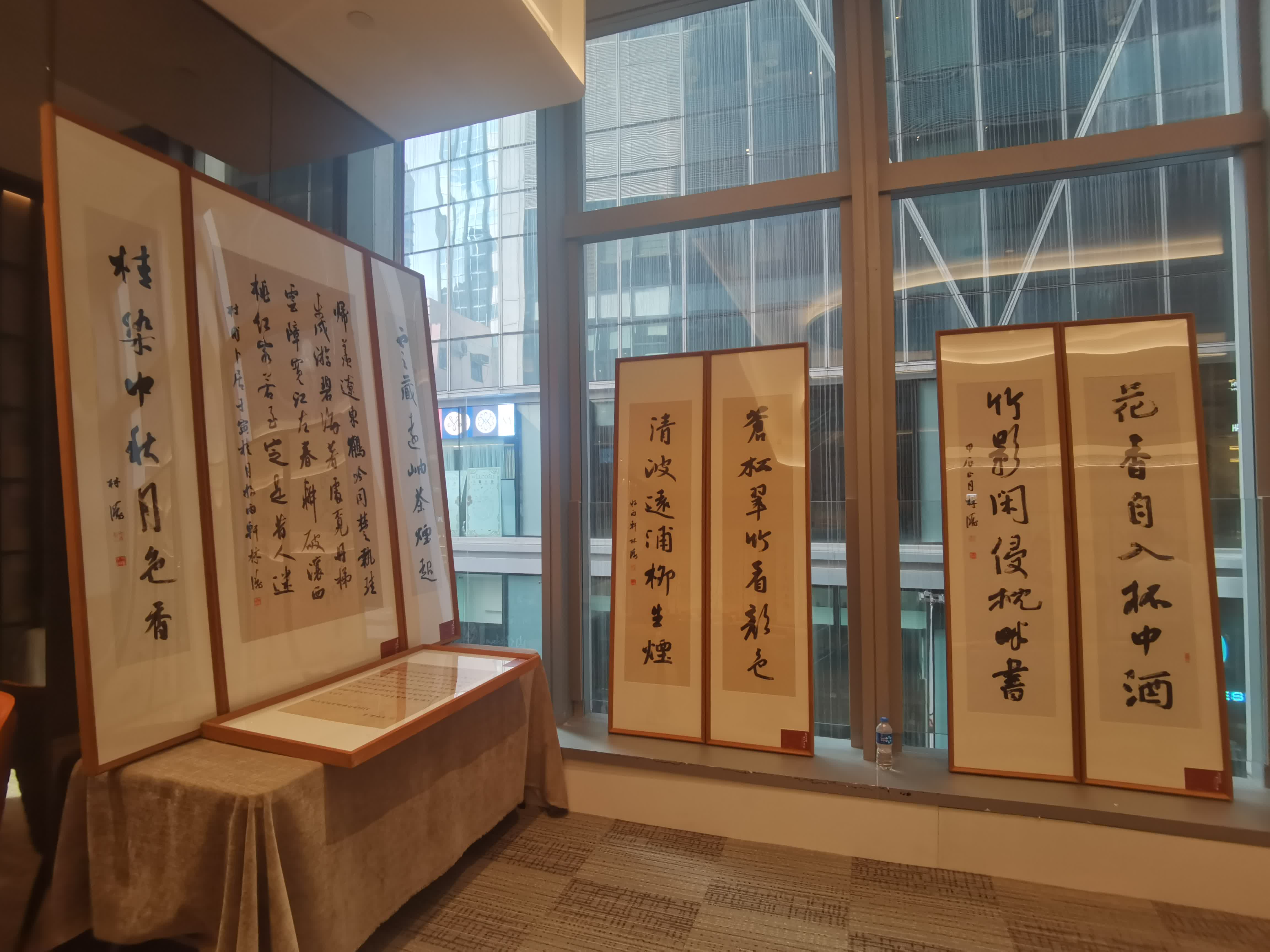 除卻經書作品之外,展覽更展出林濤創作的中堂、對聯、鬥方、小品等,作品整體風貌典雅清麗,在古詩句中,彰顯個人的書法風格。
