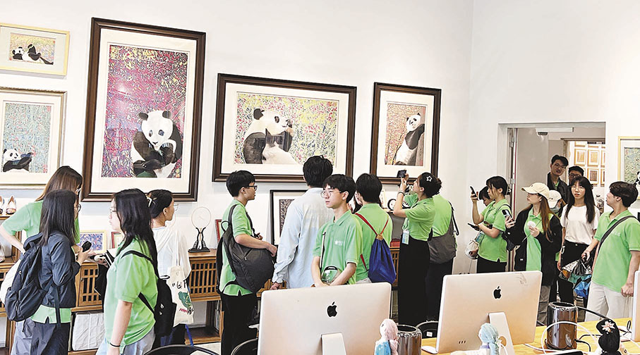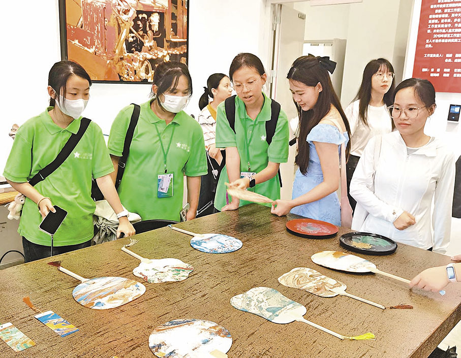 當日下午,香港青少年們還參觀了成都大學校園,在參觀中國—東盟藝術學院時,大家對蜀繡「熊貓」非常感興趣,連連讚嘆道「太萌了」。同時,香港青少年與成都大學學生志願者還進行了名字接力、方言傳聲筒等有助破冰的小遊戲,在遊戲中彼此熟悉,增進了友誼和情感。