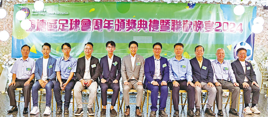 觀塘區足球會日前(9日)隆重舉行該會周年頒獎典禮暨聯歡晚宴,邀得中國香港足球總會主席霍啟山,觀塘民政事務助理專員張家朗,立法會議員鄧家彪、顏汶羽,中國香港足球總會董事朱浩賢,消防處九龍東區指揮官朱敏超,康樂及文化事務署觀塘區康樂事務經理呂智忠,觀塘體育促進會會長周耀明及觀塘區足球會主席蔡捷成等蒞臨出席,與觀塘區議員、關愛隊成員、社福機構代表、觀塘及秀茂坪警區領導、十八區體育會領導、工商界代表、地區領袖,以及球員及家長等逾300人聚首一堂,同慶共歡。