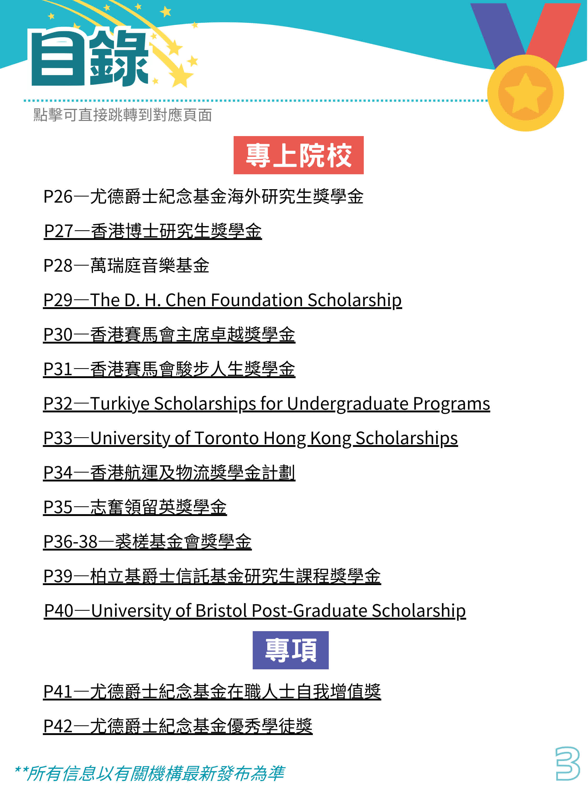 香港各類獎學金一覽。