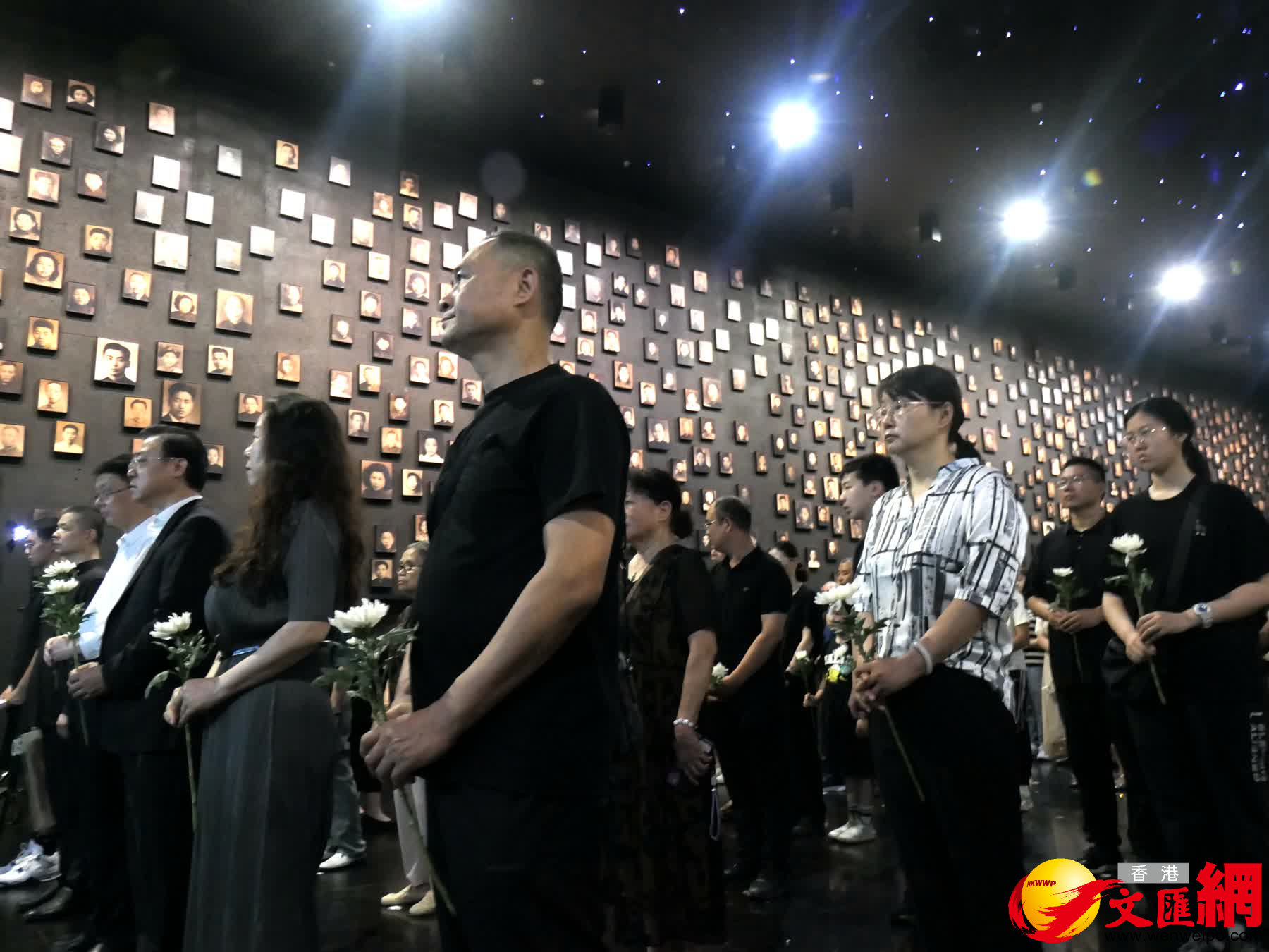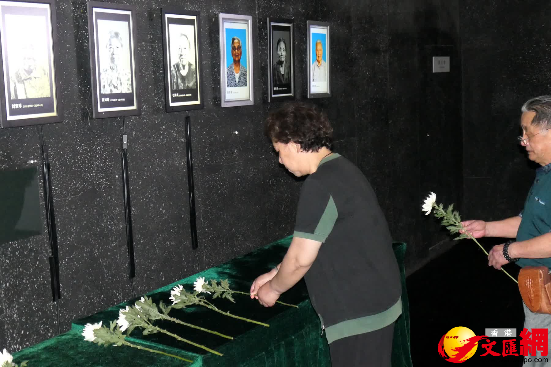 上午8時30分,紀念館內的南京大屠殺倖存者照片牆上,5位去世倖存者的照片陸續由彩色變為黑白。5位老人的家屬和紀念館工作人員、志願者依次向逝者的遺照獻花和鞠躬,表達緬懷與哀思。