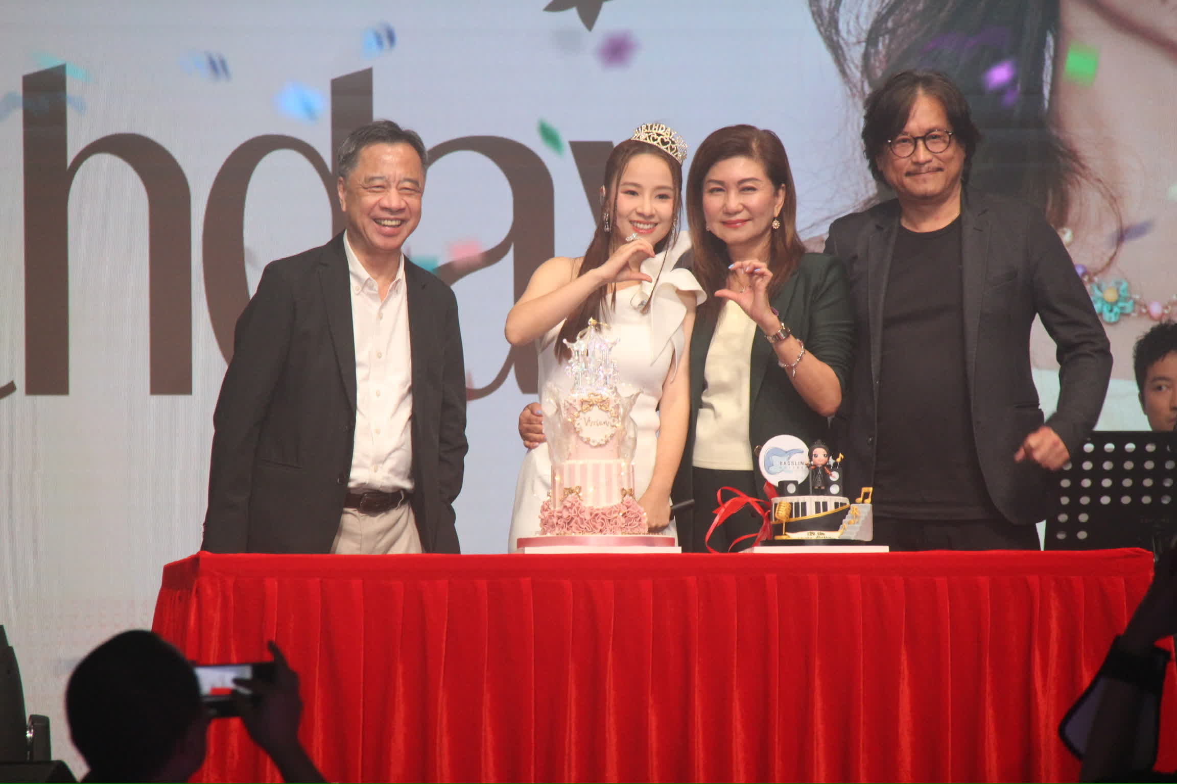 香港文匯報訊(記者 達里)谷婭溦昨晚舉行一場《Voice of Vivian 谷婭溦「溦溦」道來流行歌會》歌迷聚會,免費招待近千名粉絲歌迷,以答謝他們多年來的支持。同時,溦溦宣布加盟「無限傳奇娛樂文化」唱片公司,繼續與經理人公司TVB合作,台上獲唱片公司行政總監王凱文、TVB高層樂易玲及何麗全祝賀,並一起祝酒及切蛋糕,粉絲也趁機會送上生日蛋糕、大氣球及鮮花,補祝溦溦月初34歲生日。