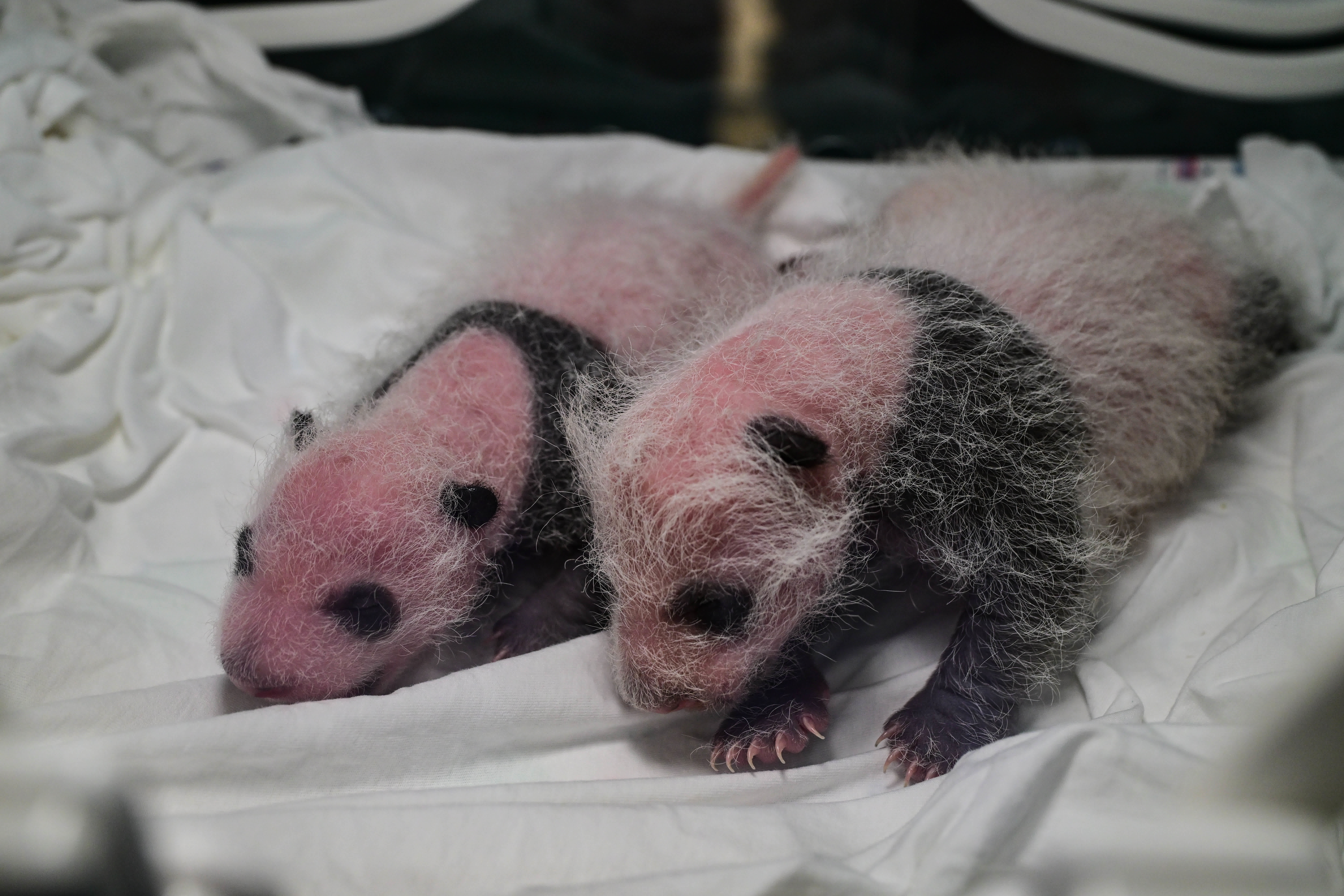 7月19日,在中國大熊貓保護研究中心臥龍神樹坪基地育幼室內,大熊貓「盼青」的雙胞胎大崽正呼呼大睡,6月29日出生的它已從粉嫩「糰子」長成黑白「糰子」,圓圓的腦袋和「粗壯」的四肢,讓它看起來很健康。而在繁育園,今年8歲、第二次當媽的「盼青」正把二崽抱在懷裏哺育,母愛洋溢。據悉,這是今年中國大熊貓保護研究中心「本部」出生的第一對大熊貓雙胞胎。
