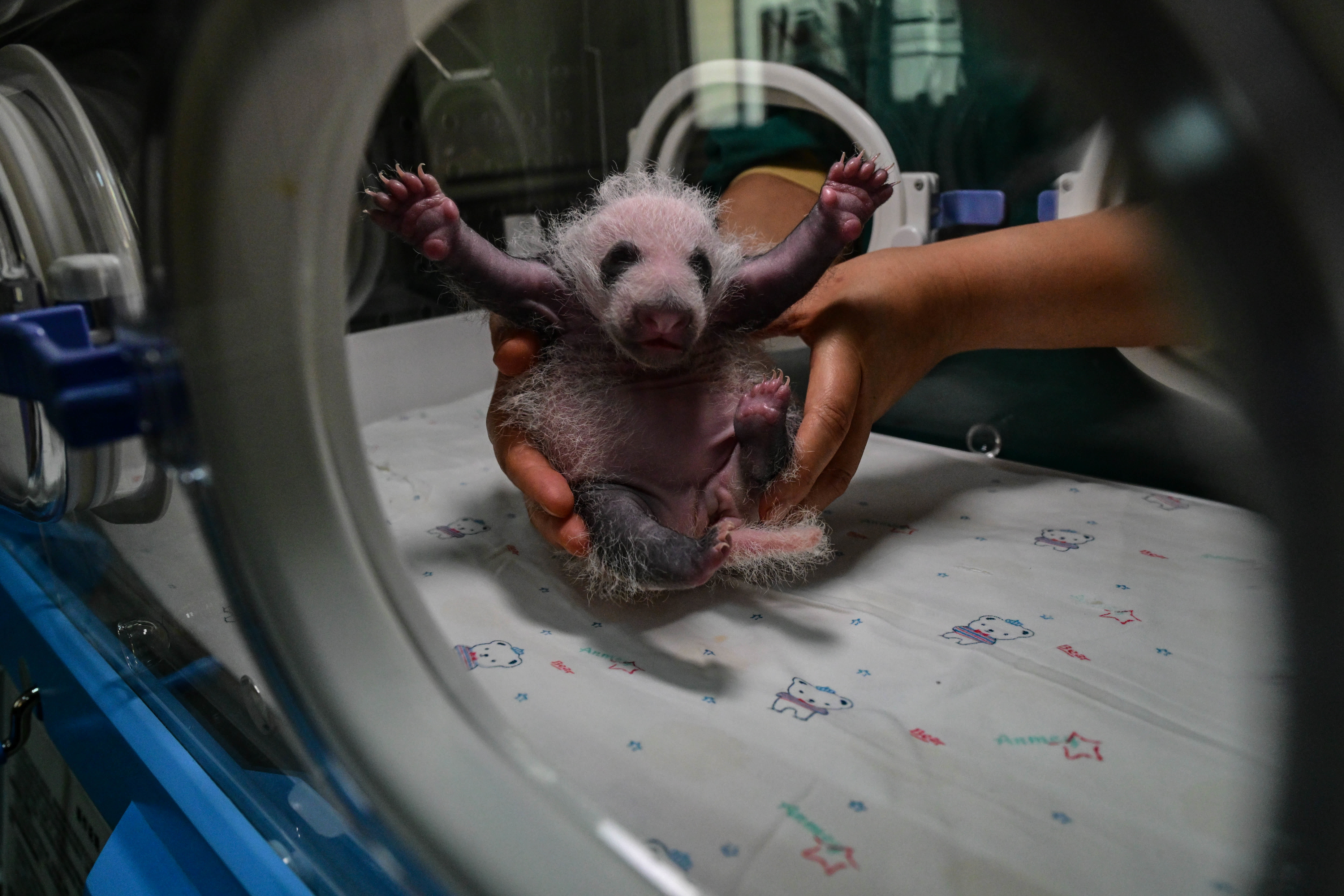 而在大熊貓媽媽「月子」期間,飼養員還會精心準備營養豐富的月子餐,讓大熊貓媽媽盡快恢復體力,更好照顧幼崽。當雌性大熊貓產下雙胞胎時,飼養員們還要充當「奶爸」「奶媽」,日以繼夜地為剛出生的熊貓寶寶們餵奶、稱重、輔助排便。剛出生的熊貓寶寶十分脆弱,需要24小時不間斷監測和照料。即便過了育幼時節,當他們處在安靜環境時,仍會對細微響動十分敏感和警覺。
