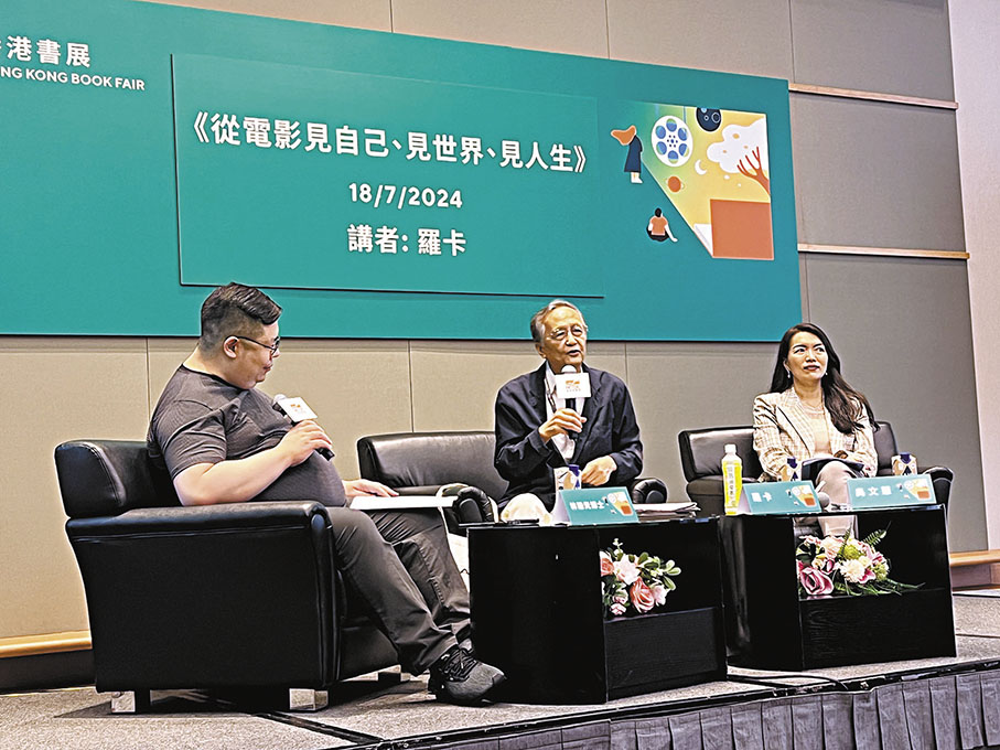 香港文匯報訊(記者 張岳悅)今屆書展以「影視文學」為主題,從香港閱讀世界,漫遊光影文字間。年度推介作家之一——電影研究學者羅卡(本名劉耀權)與好友林瀚光博士日前以「從電影見自己、見世界、見人生」為題展開座談,而羅卡追光逐影七十載的經歷,便是這個主題的最好詮釋,他簡單總結道便是:「電影教我知識,使我更全面地認識了這個世界,也給了我許多關於人生的啟示。」