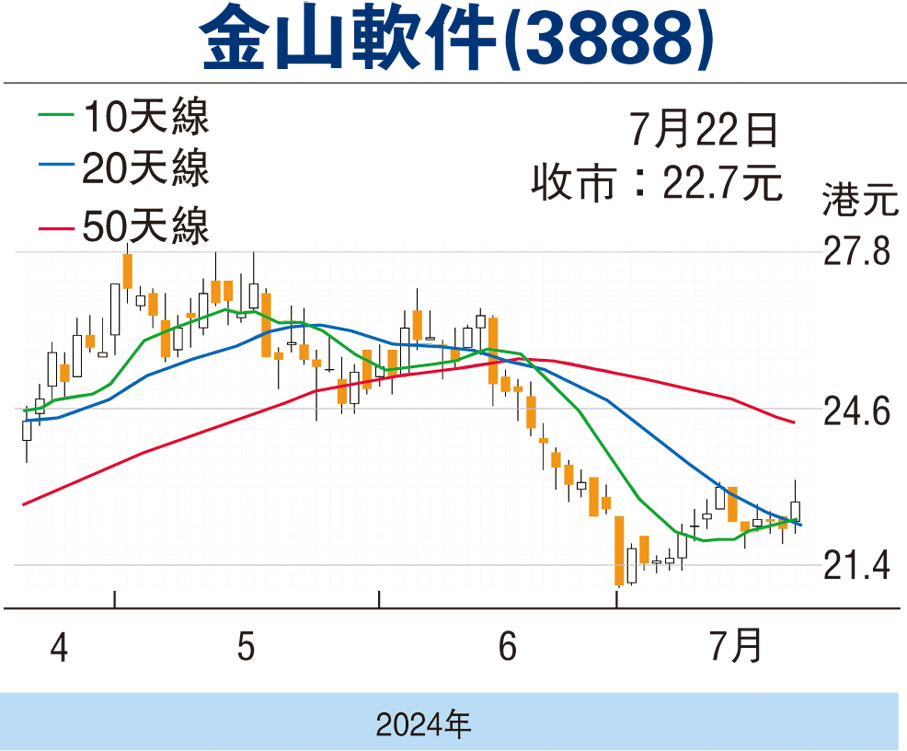7月19日美國微軟Windows操作系統大規模「藍屏死機」,造成全球史上最大電腦故障,航空、鐵路及銀行等大攤瘓。這邊廂中國憑藉國產電腦操作系統為主導,各行業運作如常,金山軟件(3888)旗下的WPS Office辦公軟件彰顯了其穩定可靠性,勢必帶動業務增長誘因,估值可看高一線。