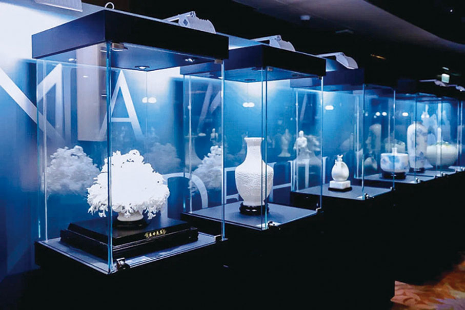 當天,德化陶瓷精品展在香港萬麗海景酒店8樓開展,展會為期三天,從7月22日持續到7月24日。展會共展出大師瓷、日用瓷、文創陶瓷等80件(套)精美陶瓷作品,讓參觀者近距離領略德化陶瓷的卓越工藝,縱享陶瓷藝術的文化盛宴。