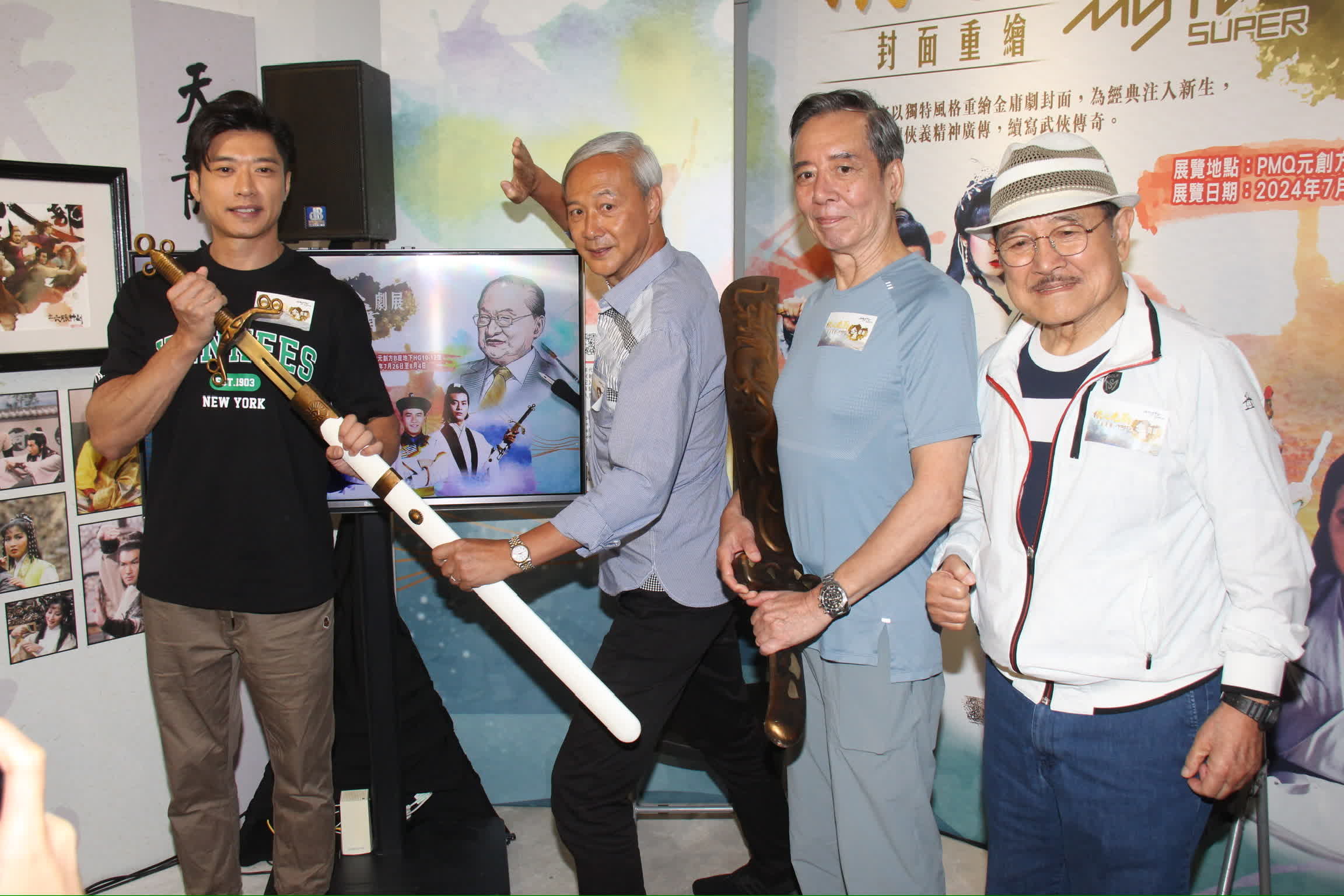 香港文匯報訊(記者 達里)劉丹、駱應鈞、陳榮峻與李偉健(Terry)今日出席為紀念查良鏞博士(金庸)百年誕辰的《俠之光影封面重繪myTV SUPER金庸劇展》活動,現場展出金庸小說筆下的「倚天劍」、「屠龍刀」,又將展區布置成「桃花島」,附設金庸電視劇的經典劇照和對白。大會同時邀請8位本地著名畫師為金庸電視劇重繪封面,負責畫《俠客行》的Terry以Q版造型畫畫,配合小說充滿神神怪怪的特色,有別傳統武俠小說。