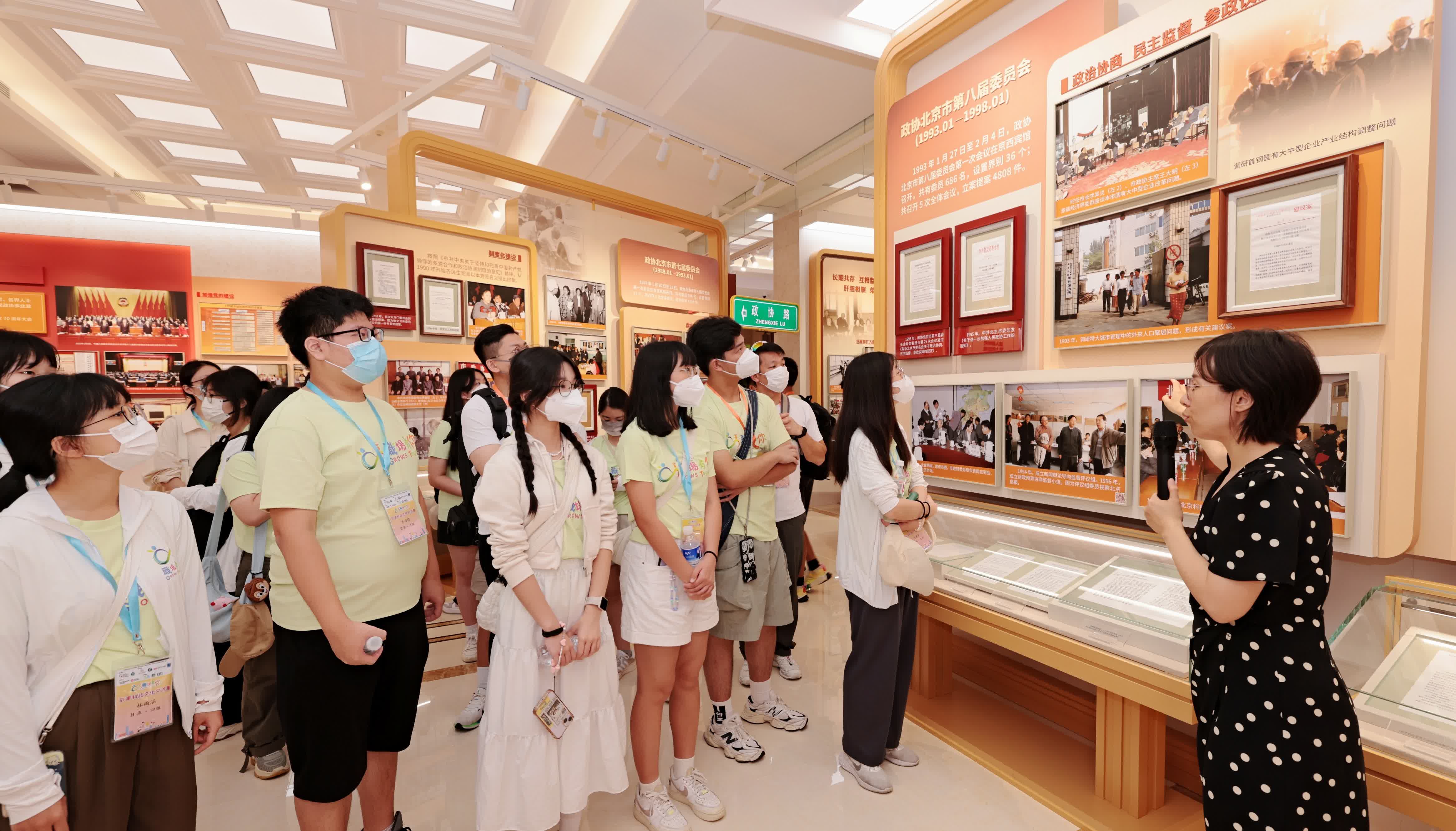 隨後,港生們來到了北京市政協機關,在辦公樓前合影留念。北京市政協副主席崔述強及港澳台僑和外事委員會有關領導與會見大家並親切交談。在北京市政協機關,港生們參觀了「北京市政協光輝歷程展」,通過現場的實物、圖片、場景復原等方式,對於「全過程人民民主、政治協商、民主監督、參政議政、廣泛凝聚共識」這些只在書本上看到的詞彙有了更多元的認知。大家還認真傾聽了北京市政協如何通過常委會議開展協商議政的介紹。