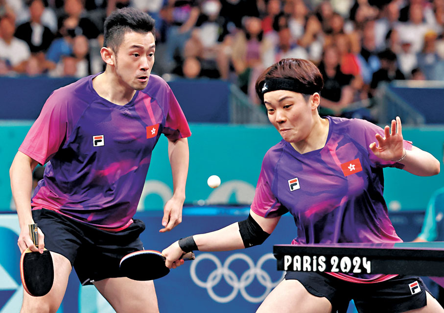 香港文匯報訊(記者 楊浩然)香港著名乒乓球組合「黃杜配」黃鎮廷/杜凱琹,於昨晚出戰巴黎奧運會乒乓球混雙8強戰,結果「黃杜配」以局數4:2淘汰西班牙組合Alvaro Robles/肖瑤茜。