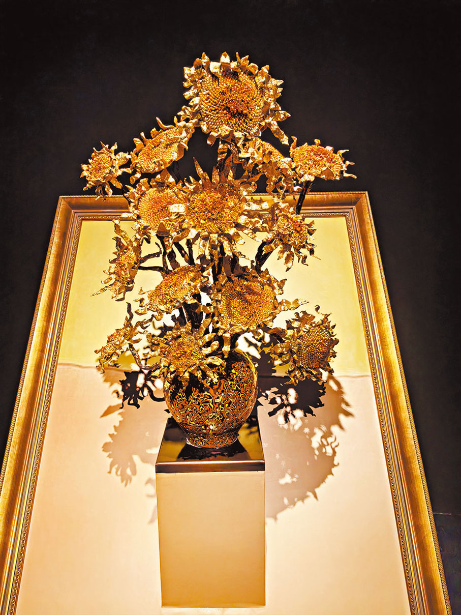 步入展廳,彷彿進入了一個「銅話」的世界。中國第一座彩色銅雕寶塔——雷峰塔的建築藝術品,第一座銅橋「涌金橋」,及代表中國銅壁畫創作高峰的《萬泉歸海》等經典作品悉數亮相。國博珍藏的熔銅藝術開山之作——《闕立》,時隔十七年再次與觀眾見面,與《稻可道,非常稻》《千里江山》《燃燒的向日葵》等作品,共同演繹了一場形意交織的雙重盛宴。朱炳仁的新作《黃河奔騰》,為獻禮建國75周年而作,以九曲黃河為靈感,彰顯中華民族的堅韌精神。《運河之光》則通過對運河的描繪,展現「運河三老」之一的朱炳仁對中國大運河的關注與讚美。展覽還特別設置互動體驗區,讓觀者有機會親手觸摸銅雕藝術的溫度,感受來自金屬的質樸和力量。