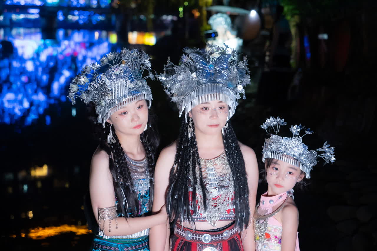 旅遊線路一:北門體驗十二道攔門酒→進入景區→觀看情定西江·討花帶演出→體驗苗族刺繡、蠟染、銀飾鍛造等技藝→觀景台看夜景→三春里·季酒店