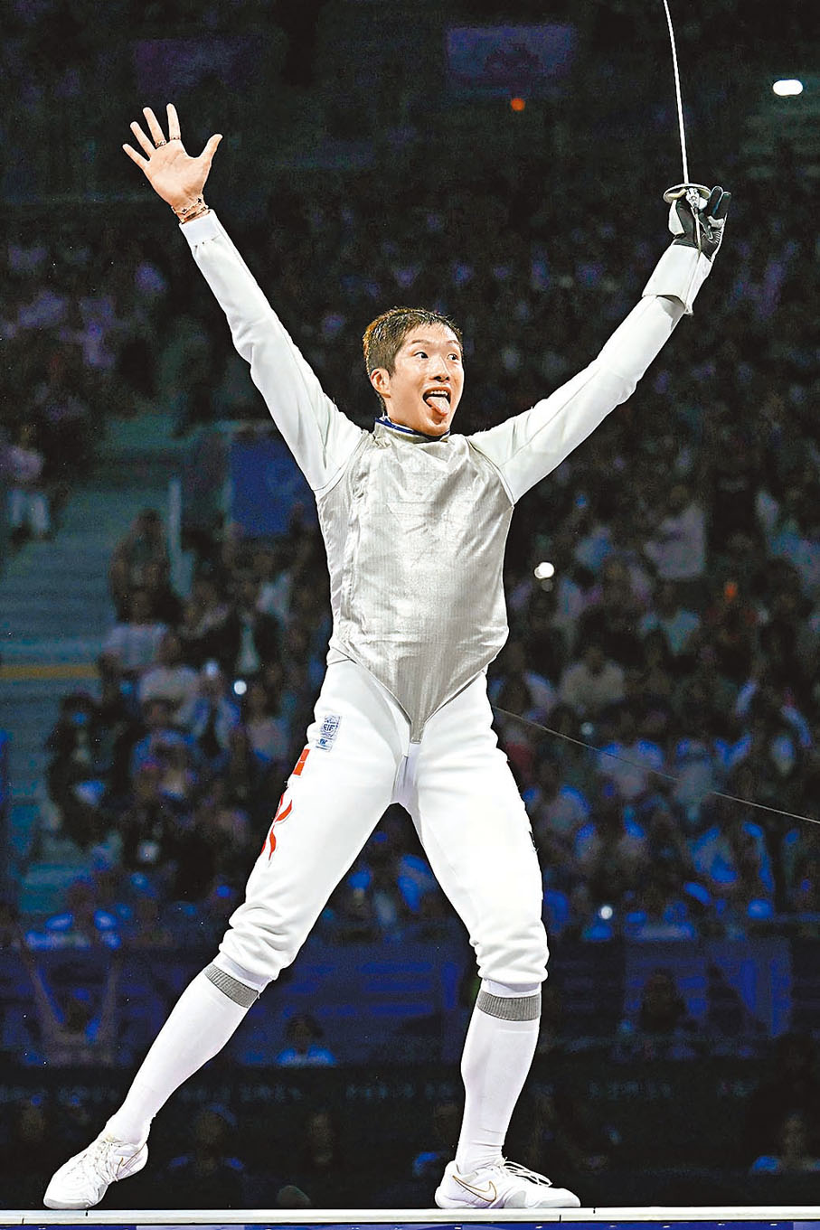 香港文匯報訊 觀眾追看張家朗今屆比賽的時候,相信也會發現這位香港劍手每次取得勝利時,也會作出「伸脷」慶祝動作,據他本人透露,其動作靈感可能來自「籃球之神」米高佐敦。
