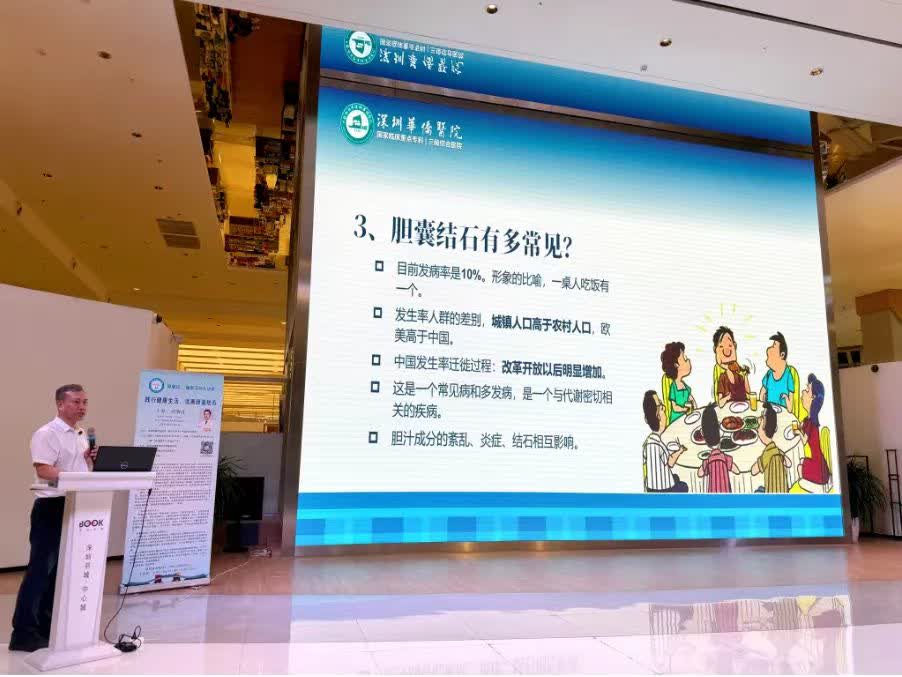 隨着醫療技術的進步,膽囊結石不只是「一切了之」。日前,深圳市健康服務與傳播促進會邀請深圳華僑醫院胡明彥院長走進深圳中心書城「健康深圳大講堂」,分享了一堂以《膽囊結石的預防與治療》為主題的健康科普公益講座。胡明彥院長介紹,膽囊結石是一種消化系統非常常見的疾病。不吃早餐、體重超標、長期少運動和久坐習慣等不健康的生活方式,以及肥胖症、糖尿病、肝病或快速減肥、口服避孕藥、懷孕、有膽結石家族史等,都是膽囊結石的高危因素。由於膽囊所處的特殊位置,很多人會將膽囊結石發作誤以為是「胃病」。