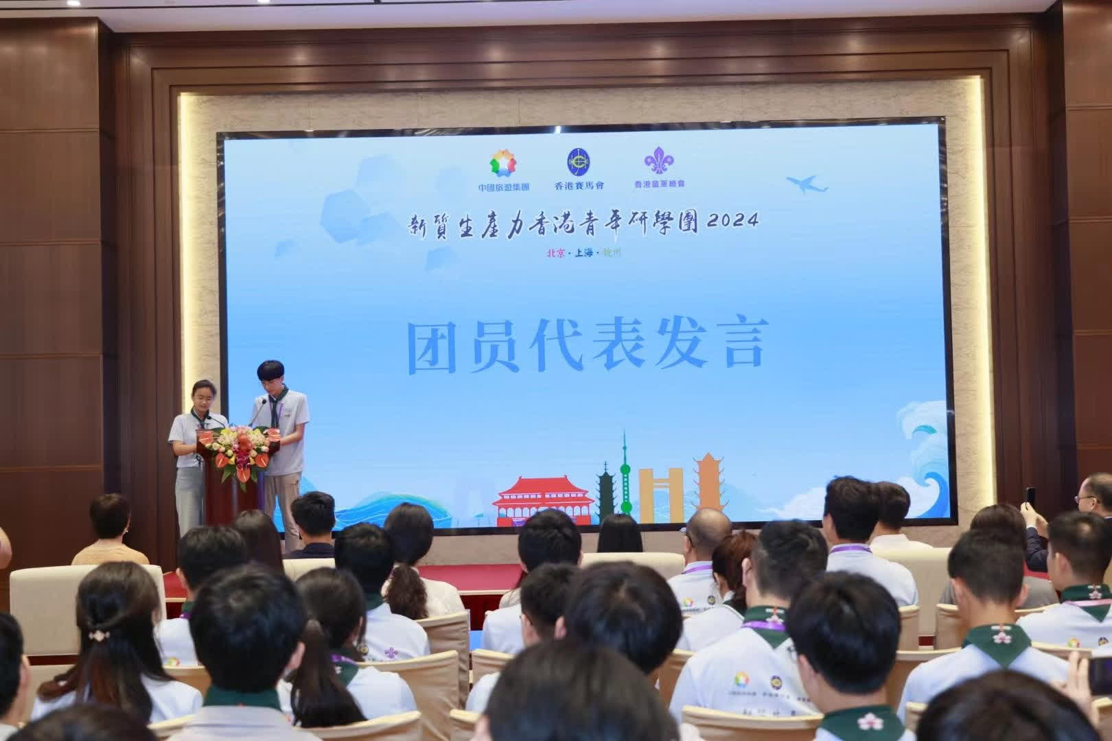 8月3日,由中國旅遊集團暨香港中旅集團(以下簡稱 「中旅集團」)主辦、香港賽馬會贊助、香港童軍總會協辦,並得到中央政府駐港聯絡辦青年工作部大力支持的「新質生產力香港青年研學團 2024」活動開營儀式在北京舉行。百餘名香港青少年將前往北京、上海和杭州,參訪當地知名科創企業,開啟一場聚焦「新質生產力」的探索之旅。中旅集團旗下中國旅遊集團旅行服務有限公司(以下簡稱 「中旅旅行」)提供全程的行程服務。