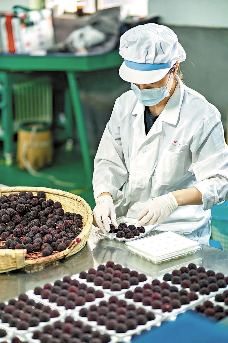 每到楊梅季,在「中國楊梅之鄉」浙江省余姚市,黑紅透亮的楊梅掛滿枝頭,摘楊梅、吃楊梅成為了無數人的限時狂歡活動。楊梅雖為時令水果,但對余姚人而言,楊梅的酸甜滋味並非只能在楊梅季才能品嘗到。以新鮮楊梅為原材料,將其深加工製成酒、果醬、酥、蜜餞、罐頭、果汁等,楊梅便不再是「季節限定」。 ◆香港文匯報記者 連慜鈺 浙江報道