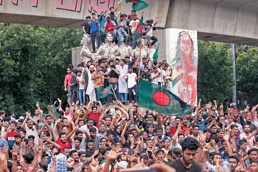 孟加拉學生團體上月因反對公務員職缺配額制度發起抗議,隨後引發全國騷亂,局勢愈演愈烈,成為哈西娜執政15年來最嚴重的騷亂之一,民眾要求她下台的呼聲日益高漲。騷亂至今已造成至少300人死亡,單是周日便有逾90人喪生,包括14名警察。有群眾闖入東北部城鎮埃納耶特布爾一間警局施襲,入夜後群眾未有理會正實施的全國宵禁,繼續上街抗議,多處傳出槍聲。