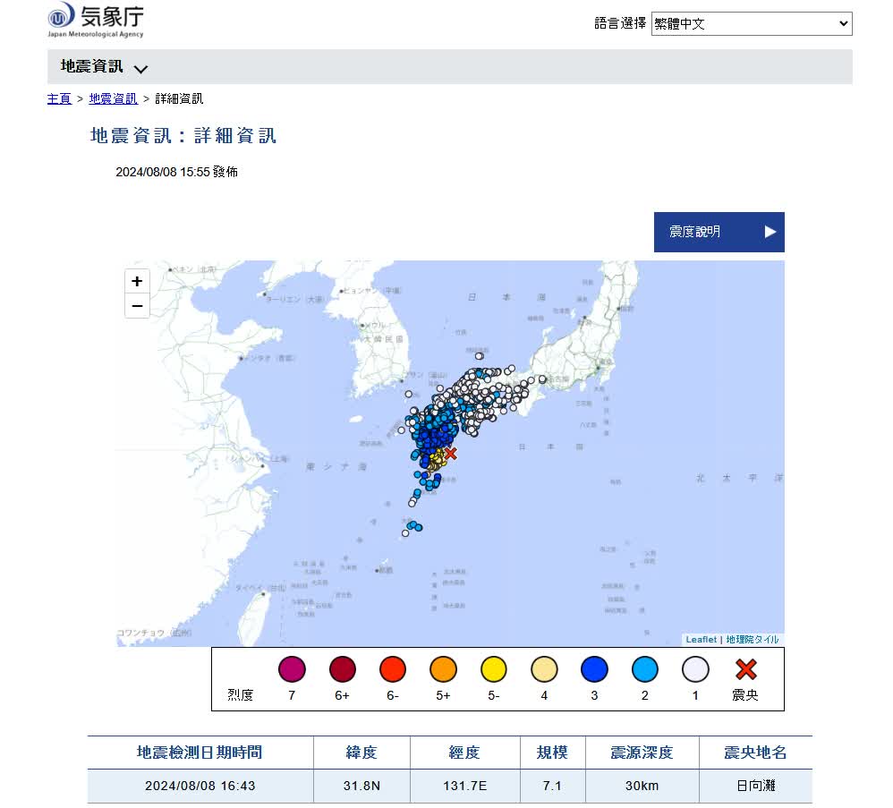 8日下午地震發生後,日本氣象廳對九州島及四國島太平洋沿岸發布海嘯預警。目前海嘯預警已全部解除。
