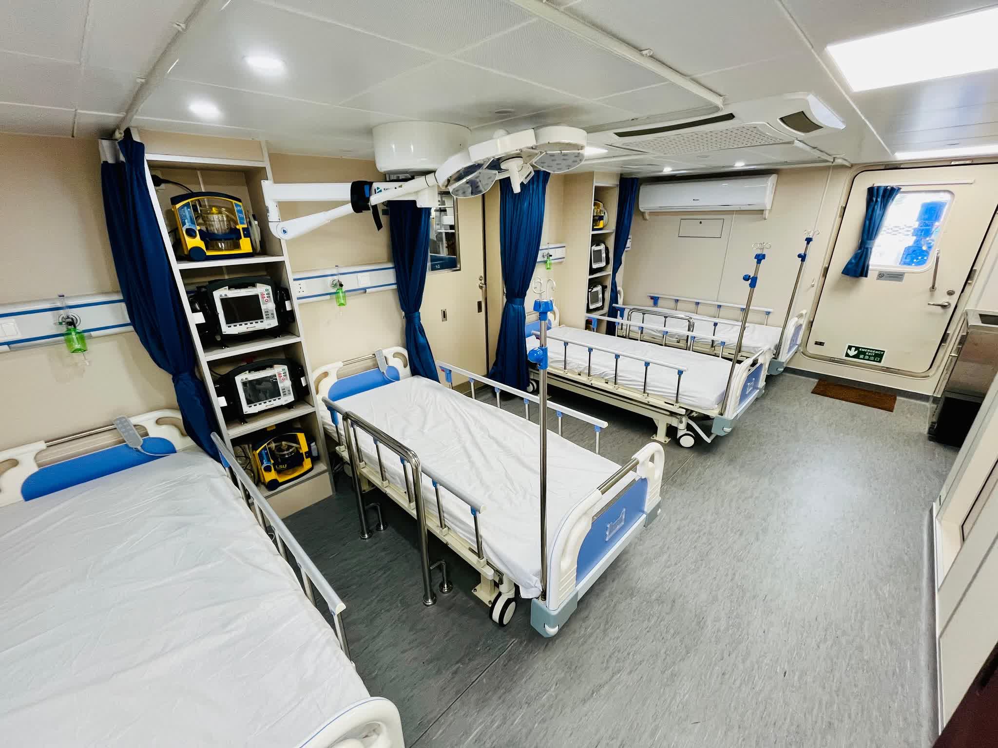 ·醫療室配備可調式電動病床及醫療氧氣供應系統等急救設施