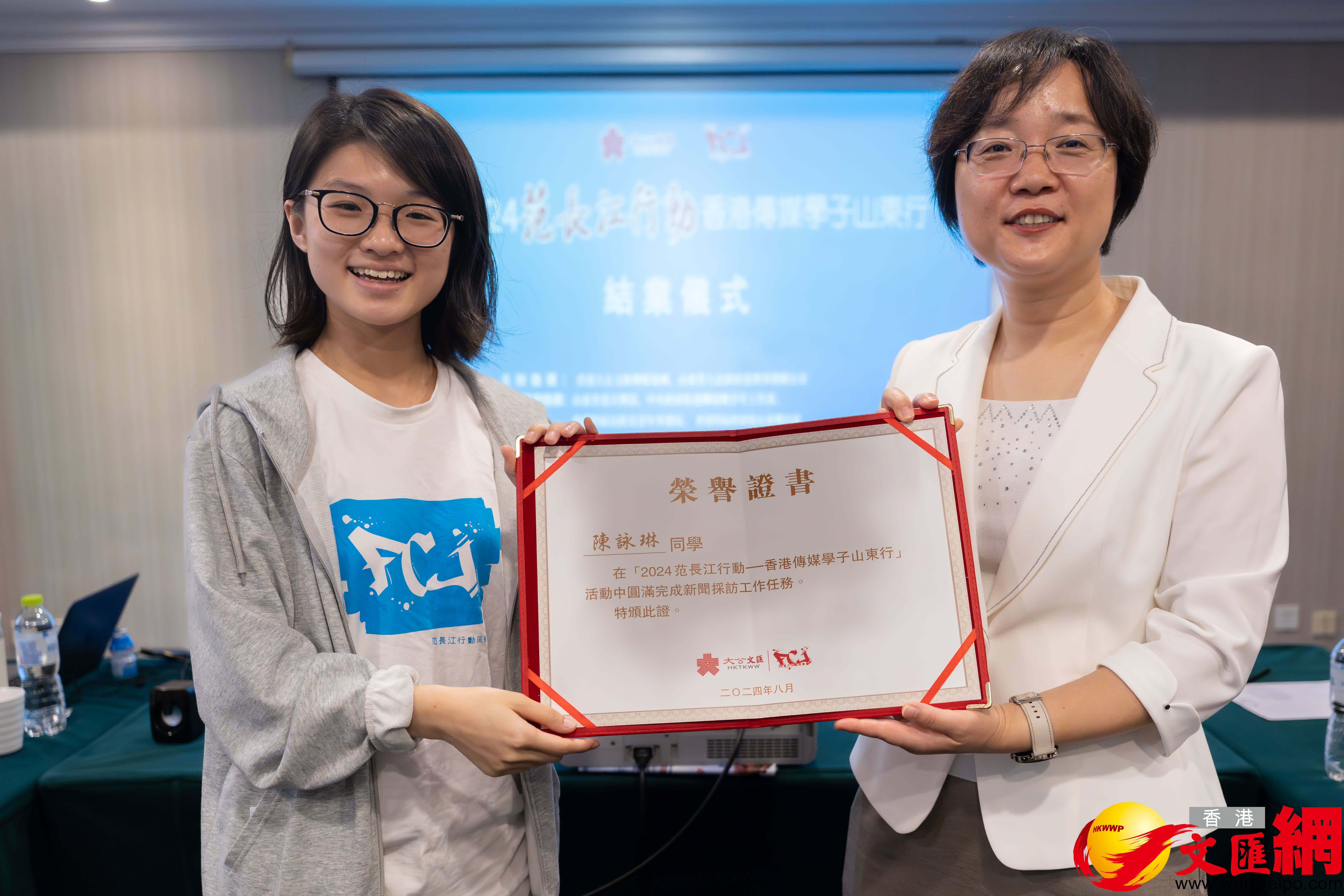 在當日舉行的結業儀式上,山東省委港澳辦宣調處處長張讓明、青島市委港澳辦副主任閆曉峰與大公報副總編輯鄭旭榮先後為香港傳媒學子頒發結業證書,祝賀他們圓滿完成此次新聞採訪任務。