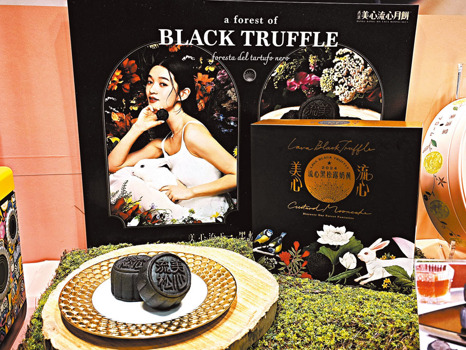 美心月餅「流心黑松露奶黃月餅」,選取意大利La Rustichella黑松露醬並加入海鹽點綴,馥郁芳香回味悠長。◆採、攝︰雨文
