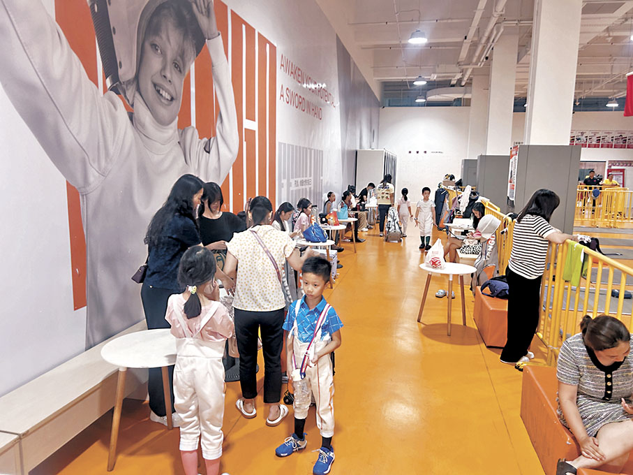 劍道旁的客戶洽談區,多名家長正帶着孩子在諮詢學劍事宜或簽訂培訓合約。杜國光告訴香港文匯報記者,這是今年暑期廣州、深圳等大灣區城市各擊劍館的縮影。以萬國體育兩個劍館為例,暑期前來試訓的孩子比往年倍增,特別是在張家朗、江旻憓奪冠後,這種增長趨勢尤其明顯。