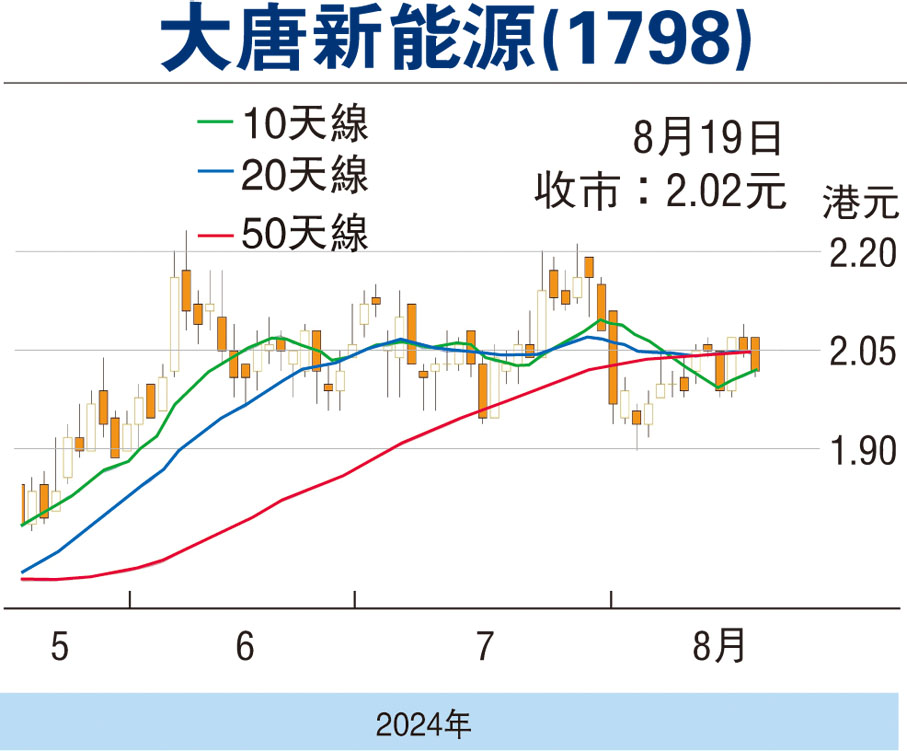 另一方面,長城人壽於8月15日增持大唐新能源500萬股,每股均價2.058元,涉資1,029.35萬元,持H股增至5.08%。銀保監鼓勵險資投資股市,特別是國策大力推動綠電裝機規模,保險機構投資相關股份趨勢料持續。