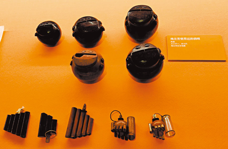 記者看到,展覽中共展出10枚鴿子哨,有的呈現排簫模樣,有的形似銅鈴,最大的約莫有女生拳頭那麼大。