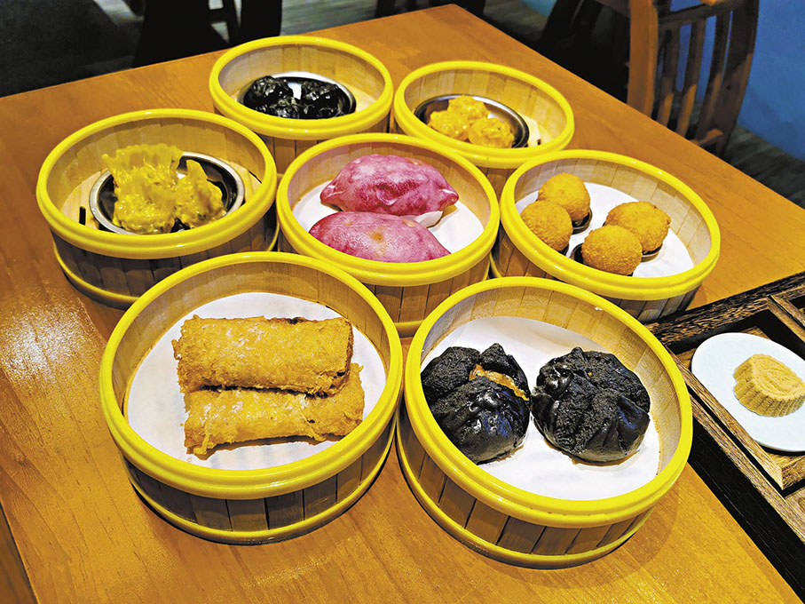 這兒主要供應特色港式點心,如炭火三杯雞、蜜汁叉燒包、蝦鬆了包一包、黑金松露和牛包、紫氣地瓜包、鴨鴨芝麻包、流沙小豬包、抹茶豆沙包、翡翠雞肉燒賣、松露豚燒賣、黃金魚子蝦燒賣、蟹黃燒賣、XXOO醬蝦餃、錦繡魚翅餃、荷葉糯米雞、脆皮海鮮卷、椰絲奶黃球、南洋娘惹炸糕、黃金乾貝福袋等味道不錯,如果叫熱飲的還會配上兩件糕點,以供品茶之用。
