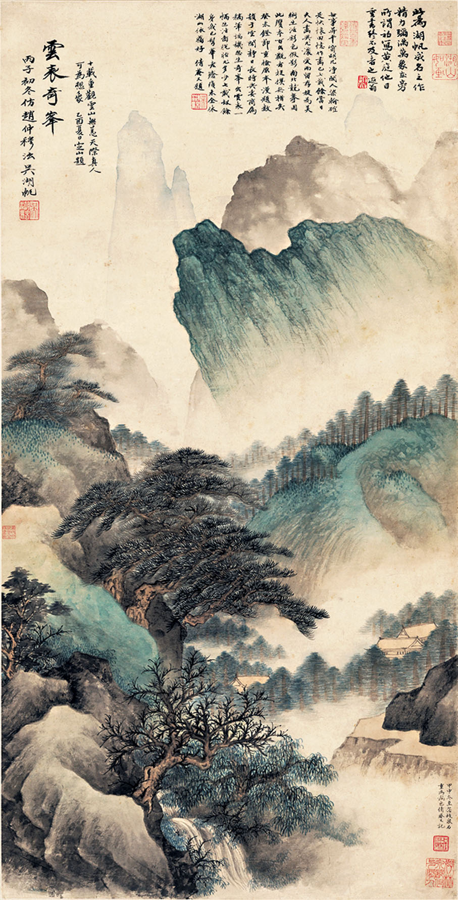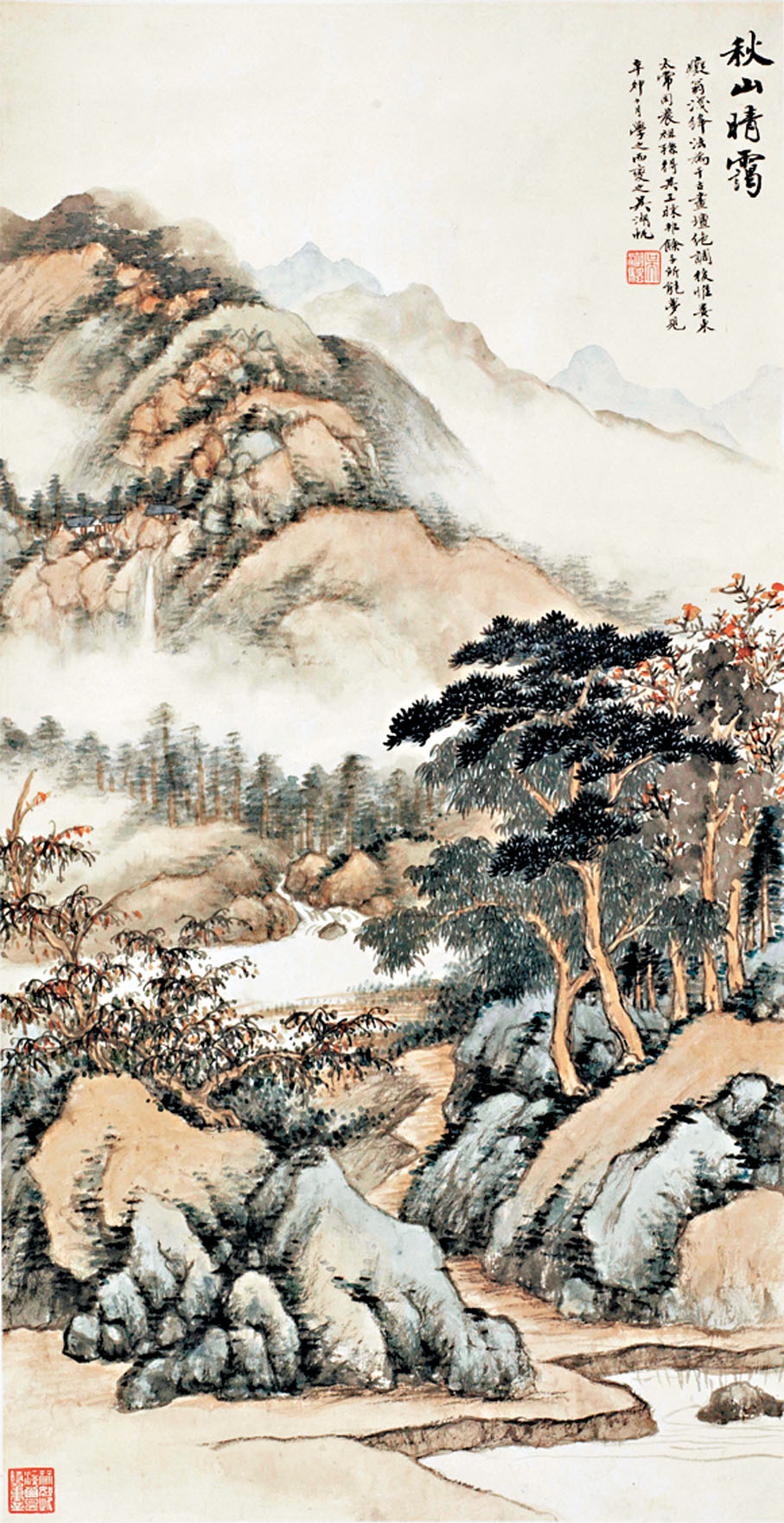 1936 年,吳湖帆以一幀華美奇幻的《雲表奇峰》震驚畫壇,他摹古而不拘泥於古的創新思想,成就了其個人畫境的突破,成為繼吳昌碩之後海上畫壇的新一代盟主。進入20世紀40年代,尤其是1945 年後,吳湖帆的書畫進入鼎盛期,他深入研究 「南北二宗」 的優點,形成了被稱為 「雅腴」 的獨特風格,其作品根基深厚,融合廣泛,色彩感強,親和力高,少了傳統文人的清峻孤傲,多了新時代畫家的平易近人。