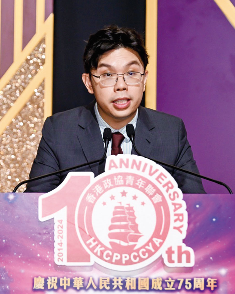 政青第六屆執委會主席沈慧林致辭時表示,香港政協青年聯會自2014年成立以來,始終秉持「服務國家、服務香港、服務會員」宗旨,十年來在培育青年發展、推廣國民教育、開展慈善活動等領域碩果纍纍,並成功培養出一批勇於擔當的青年政協委員,以及一眾政治立場堅定、樂於奉獻社會、熱衷參政議政的優秀青年。