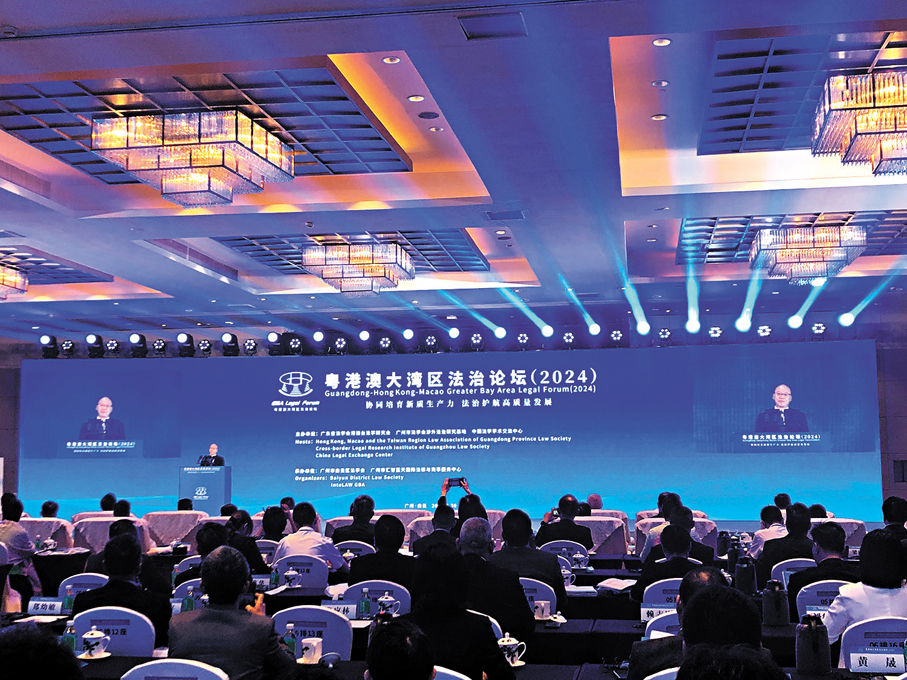香港文匯報訊(記者 方俊明 廣州報道)粵港澳大灣區法治論壇(2024)昨日在廣州白雲舉辦,並發布論壇成果文件《粵港澳大灣區法治論壇白雲共識》,聚焦共同建設國際一流營商環境、共同推進規則銜接機制對接、共同健全知識產權保護制度、共同強化涉外法治服務供給四個方面,號召灣區9+2城市的法學學術團體、法學研究組織同向前行、持續合作。