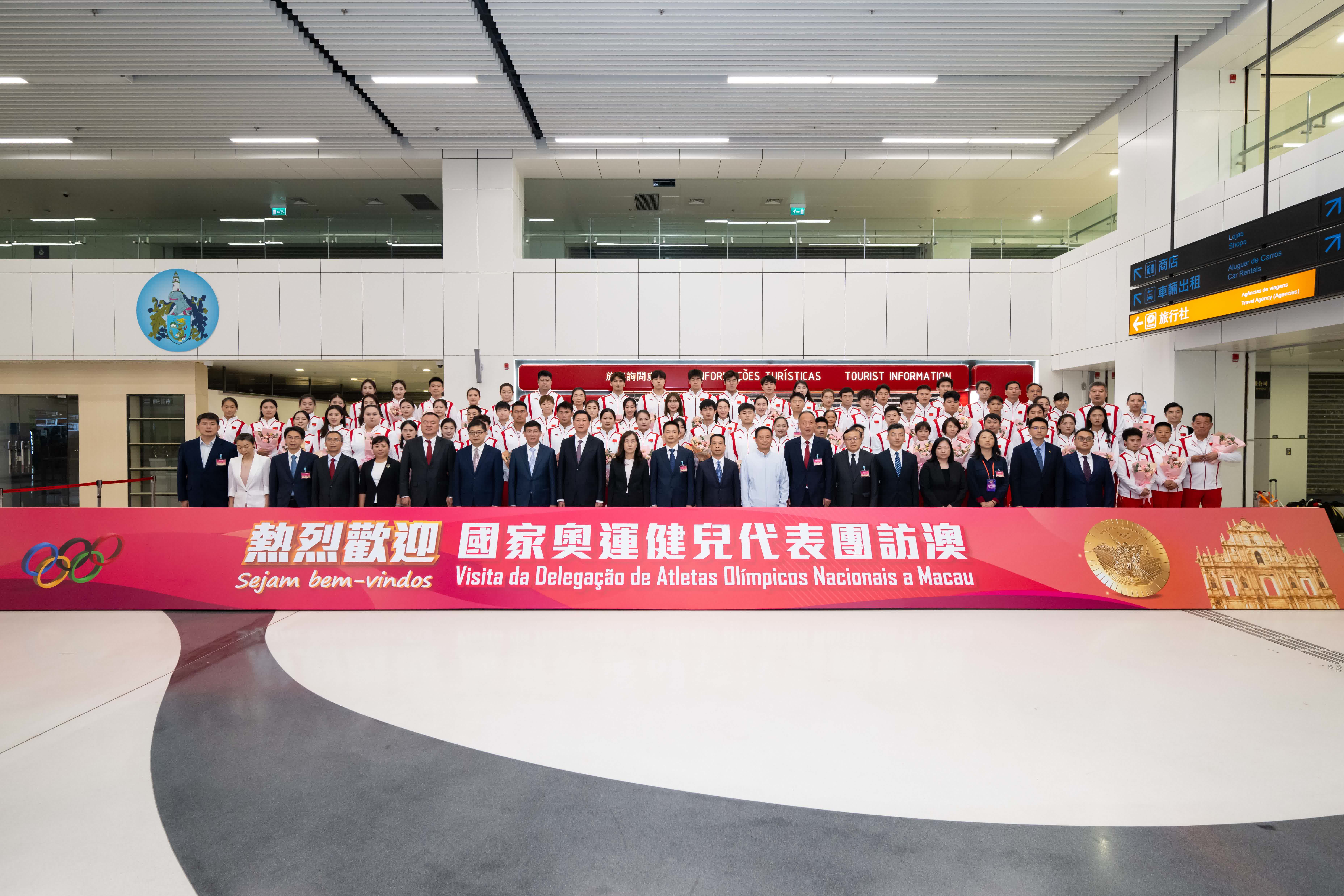 巴黎奧運會內地奧運健兒代表團結束本港的3日訪問後,下午約5時經港珠澳大橋轉抵澳門,展開3日訪問行程。澳門社會文化司司長歐陽瑜、澳門中聯辦副主席黃柳權、體育局代局長張子軒、以及約150名中、小學生在場迎接。在大合照後,代表團乘坐特區政府安排的專車離開。不少市民及旅客在大橋澳門口岸等候,迎接國家隊運員訪澳。