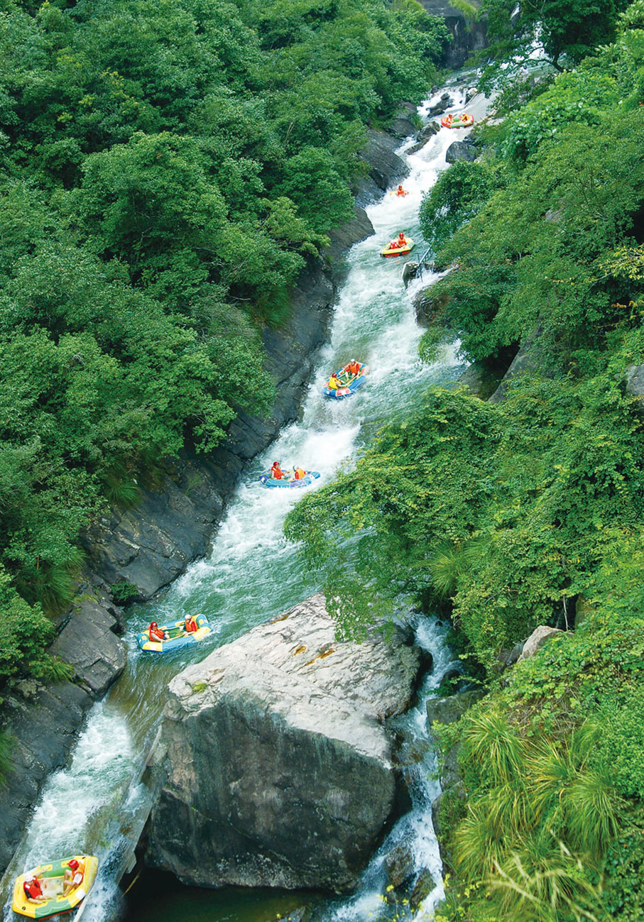 3.6公里的河道、188米的落差,當你順着河道一路蜿蜒向下,水花撲面無處可躲時,尖叫陣陣;漂流船與河道碰撞時,驚心動魄。「亞洲第一漂」大覺山峽谷漂流的刺激,真的可以讓你記一輩子!◆文:黃慧、張長森、汪永祥