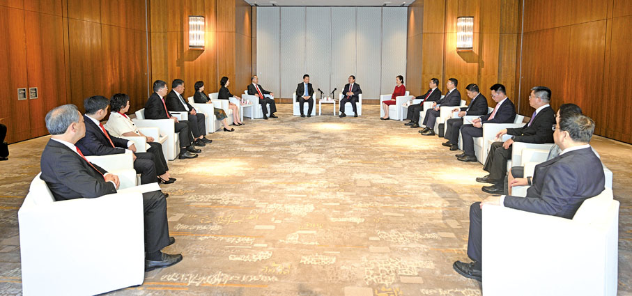 會前,郝鵬集體會見了譚錦球、蔡冠深、何超瓊、高佩璇、陳亨利、莊紫祥等香港工商界代表人士,以及香港遼寧社團總會會長何超蕸、執行會長吳旭洋、監事王樂得,作座談交流。
