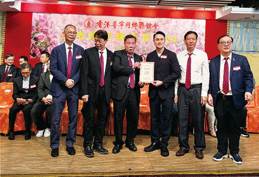 其後香港潮屬社團總會常務副主席馬介欽和香港普寧同鄉聯誼會監事長許義良分別致辭,介紹香港普寧同鄉聯誼會多年來弘揚和傳承孝親敬老的大愛精神,並感謝各位領導嘉賓蒞臨參加盛會。接下來,會長張仲哲聯同監事長許義良、常務副會長羅松亮、陳少洪以及副會長兼秘書長陳榮欣一起為主禮嘉賓包括中央政府駐港聯絡辦九龍工作部處長劉湛雄,立法會議員郭偉強、楊永傑,九龍城民政事務處高級聯絡主任廖淑芬,香港廣東社團總會常務副主席吳哲歆,香港潮屬社團總會常務副主席馬介欽,嗇色園醫療委員會主席馬澤華頒發感謝狀,感謝他們一直以來對普寧同鄉聯誼會的鼎力支持。出席的主禮嘉賓與普寧同鄉聯誼會眾首長一起合唱會歌,並進行大合照。
