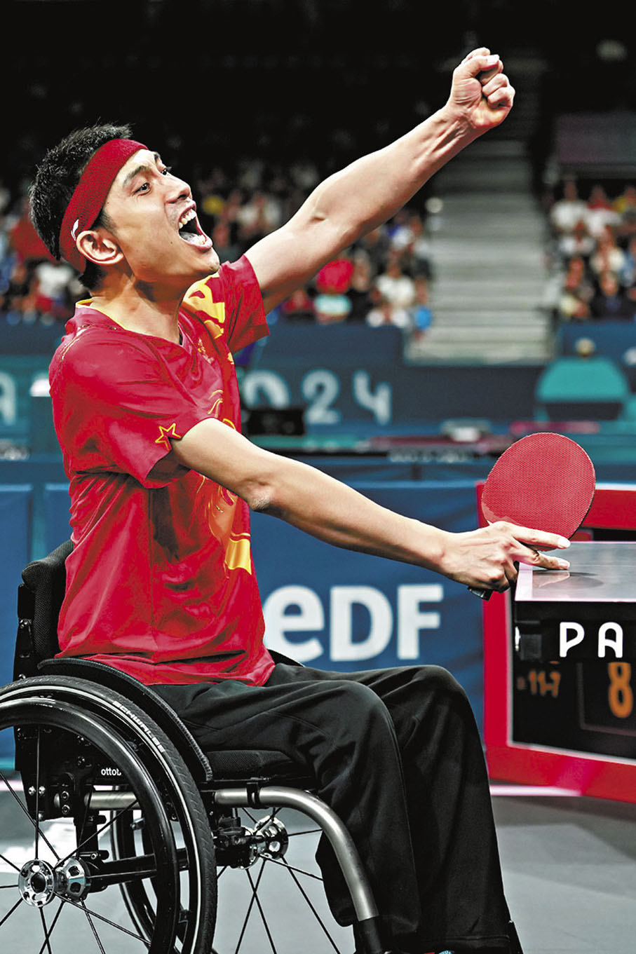 香港文匯報訊 據新華社報道,巴黎殘奧會乒乓球賽場5日的男單3級決賽中,衛冕冠軍馮攀峰僅用18分鐘便以3:0輕取老對手、德國選手施米德貝格爾,繼男雙和混雙冠軍後,奪得在本屆殘奧會的第三枚金牌。