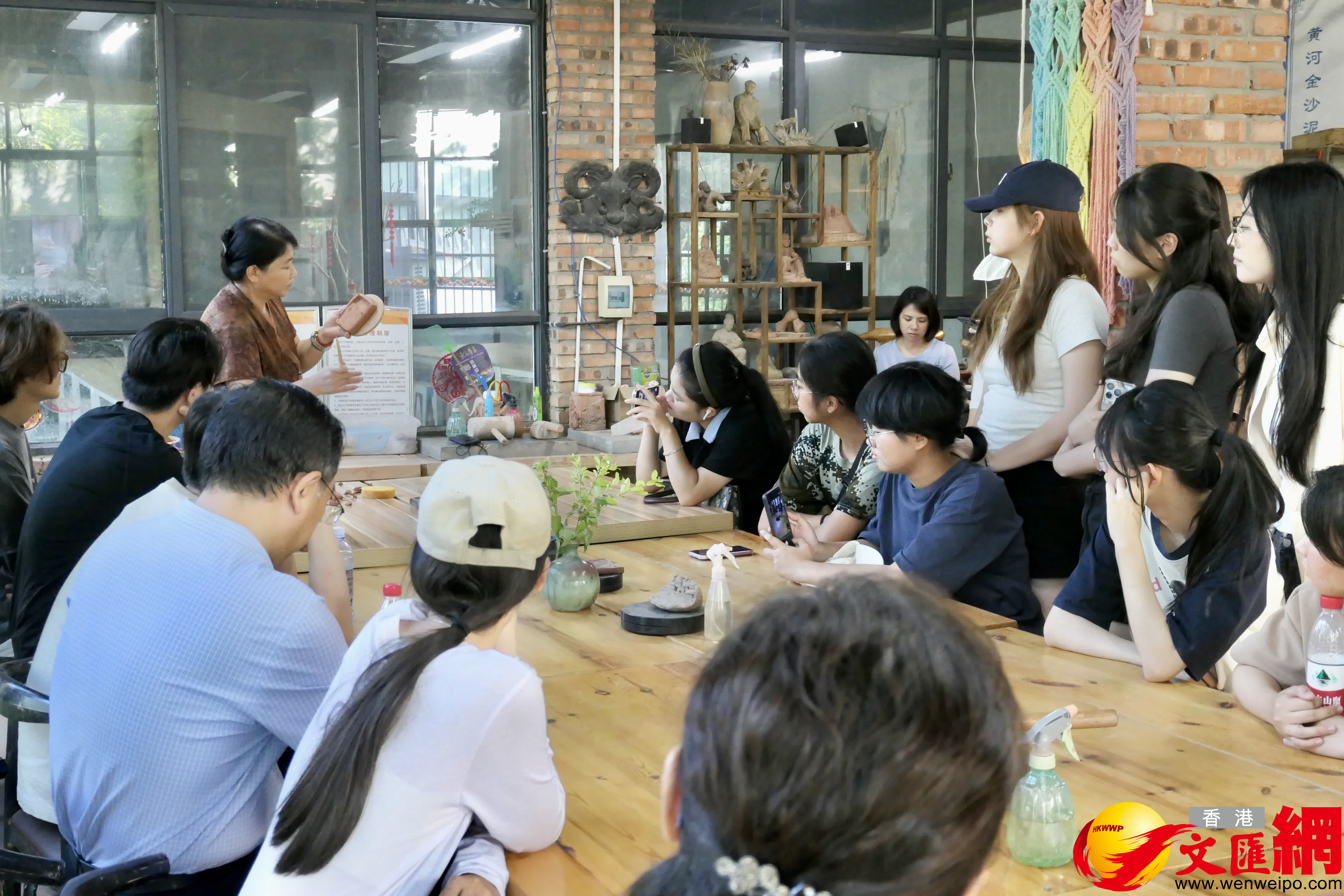 河南省非物質文化遺產展示館內,黃河澄泥硯第六代傳承人張慧向學生們展示了與洮硯、端硯、歙硯並列的四大名硯之一澄泥硯,只見這些用黃河沉積的泥沙製作的硯台成品列於展櫃,浮雕精美,色彩艷麗,引得學生們駐足拍照、流連忘返。在觀看澄泥硯的製作過程中,有學生用手指沾一點泥硯向一旁的朋友展示:「這可是比牛肉還貴的澄泥!」參觀活動結束後,來自香港的陳同學感慨道:「希望以後有機會可以親自動手製作澄泥硯。」