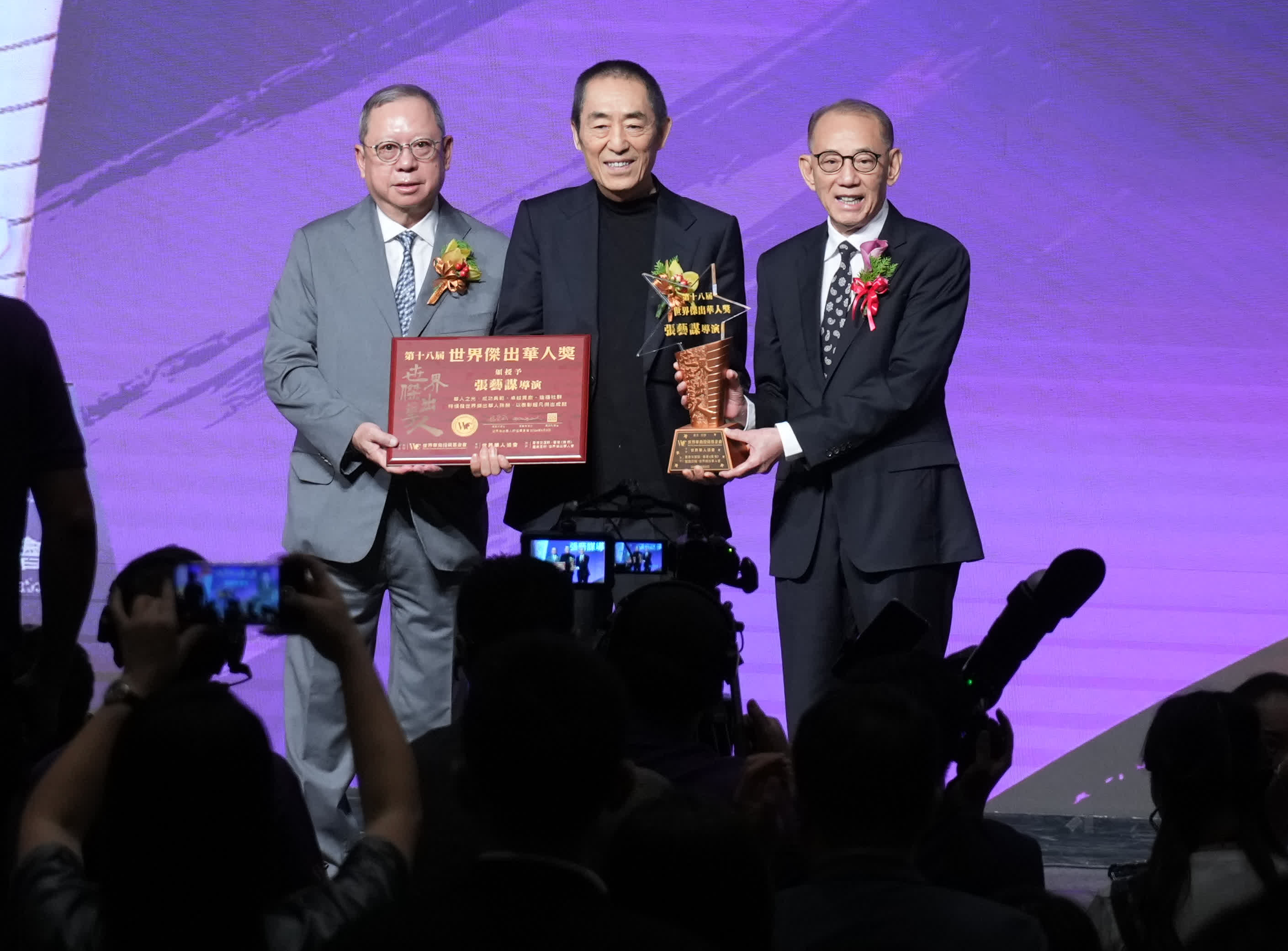 蜚聲國際的中國殿堂級導演張藝謀獲頒發「世界傑出華人獎」,大會感謝張藝謀導演在視覺藝術領域的非凡成就,為帶領中國電影走向世界影壇作出傑出貢獻。另一位得獎者為福耀玻璃工業集團董事長曹德旺。他多年來熱心公益,被譽為「中國首善」及「汽車玻璃大王」。