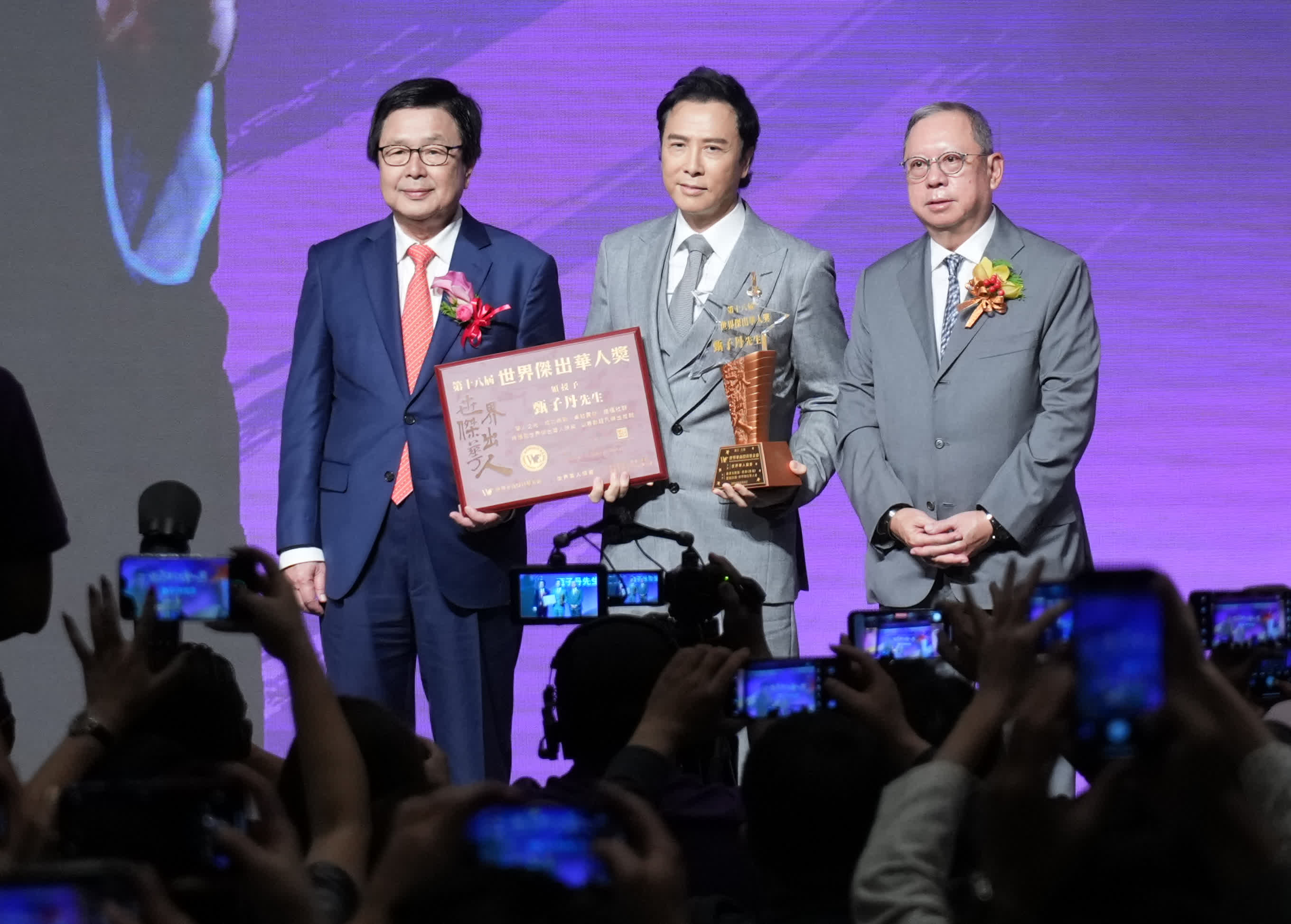 (大公報記者 吳俊宏)由世界華商投資基金會主辦的「第十八屆世界傑出華人獎」頒獎典禮昨日(8日)於香港會展中心舉行,以表揚得獎者對各地華人社會及國家的貢獻。得獎者包括著名導演張藝謀、張國立,著名電影及電視演員甄子丹、惠英紅等眾多知名人士。香港著名水墨藝術家林天行則榮獲「第八屆世界傑出藝術家大獎」。