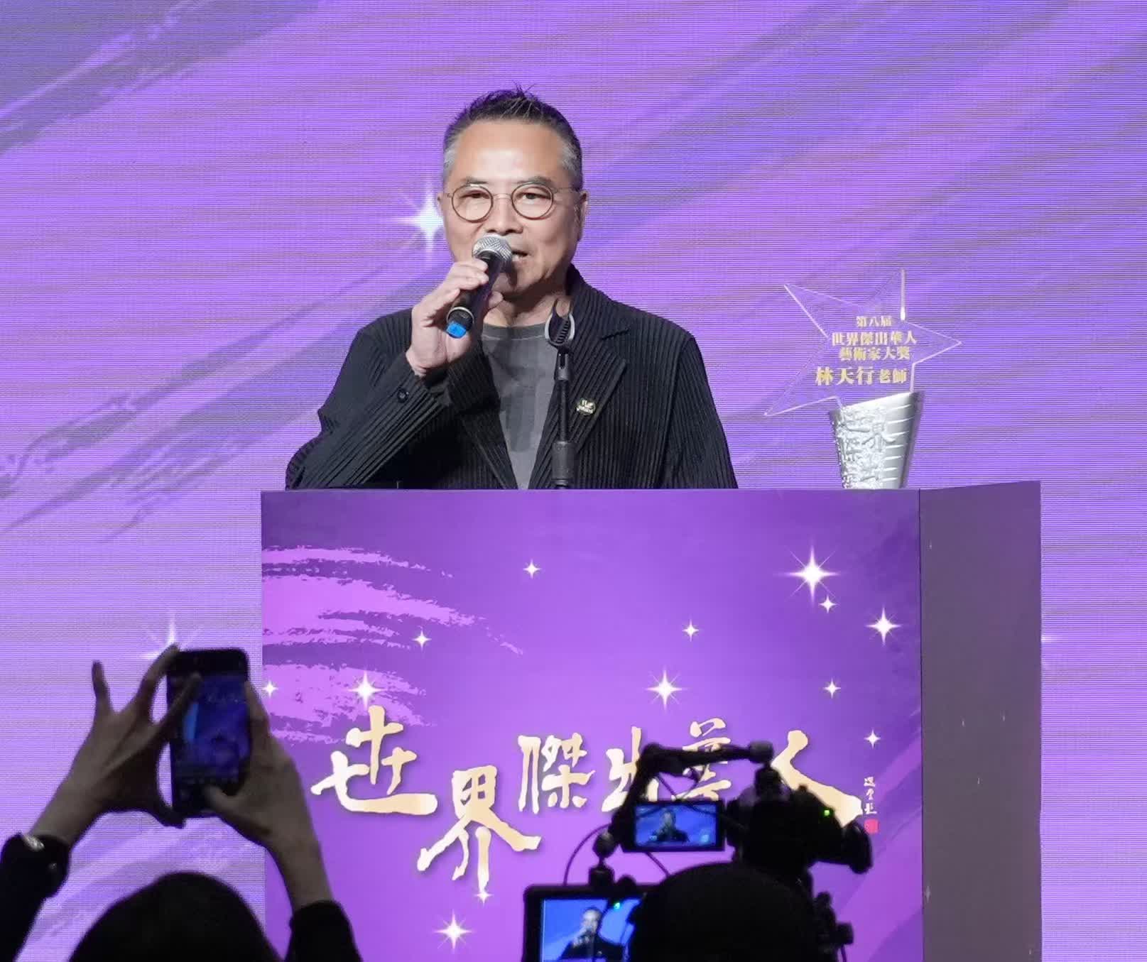 香港著名水墨藝術家林天行獲頒「第八屆世界傑出藝術家大獎」,他說,自從國家定位香港為中外文化藝術交流中心,特區政府積極進行藝術推廣工作,期待政府能夠推廣更多香港本地藝術家,令他們有機會讓更多人認識,甚至走出海外。