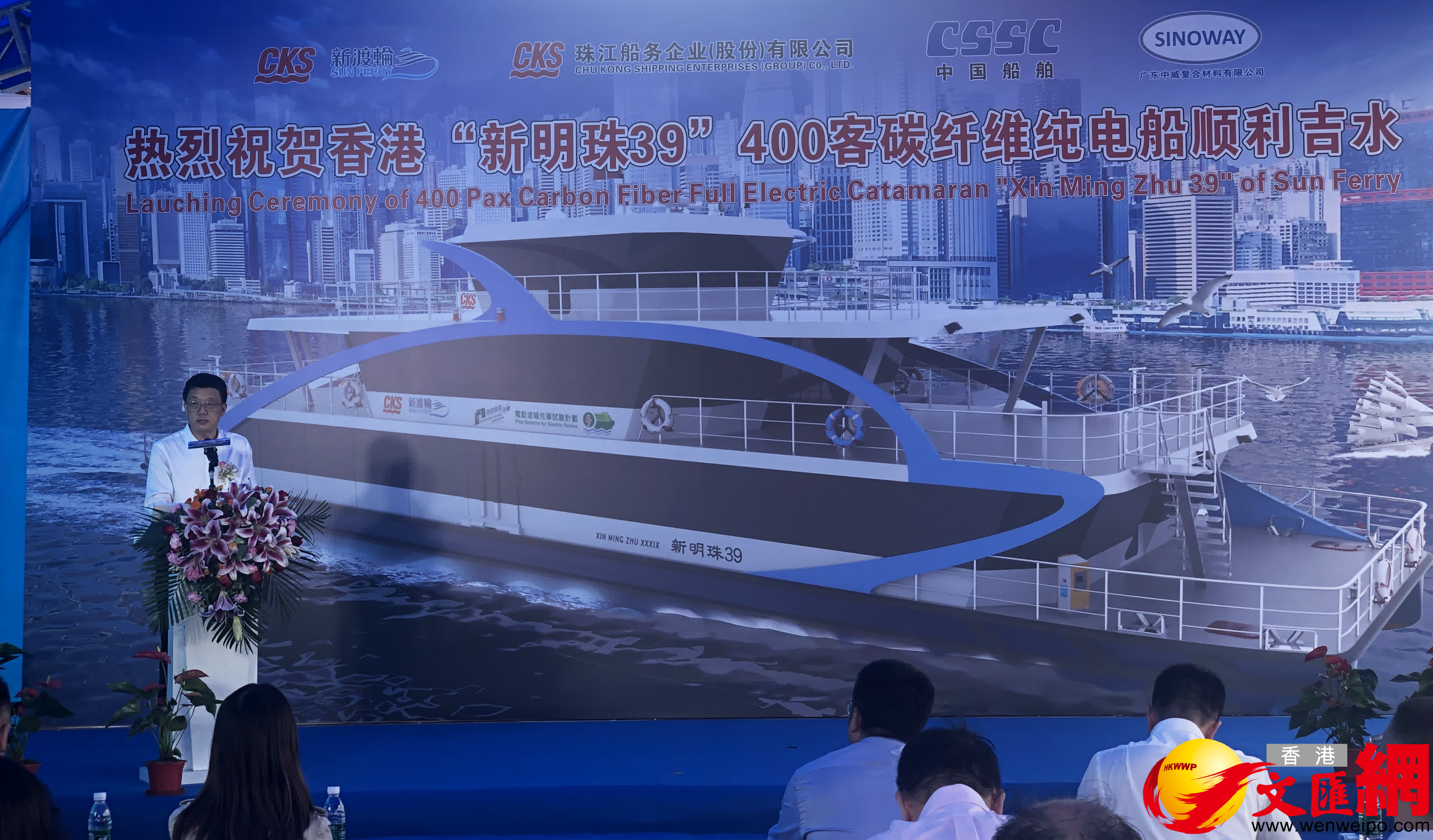 (香港文匯網記者 方俊明)香港又將增添國產客渡船!香港新渡輪400客位純電池動力推進客渡船「新明珠39」號下水儀式今天(9日)在廣州南沙舉行。該船全船採用先進的碳纖維高新材料製造,具有重量輕、耐腐蝕、噪音低等技術優勢,是目前香港地區首艘整船採用國產碳纖維材料建造的客渡船,打破了高端碳纖維進口材料在國產客船的技術壟斷局面。這標誌着中國船舶集團廣州船舶工業有限公司牽頭組織「產、學、研」結合,開展高端碳纖維材料國產化研究、應用及產業化推廣取得了成功。該船亦將為香港綠色環保「零排放」渡輪先驅項目貢獻力量。