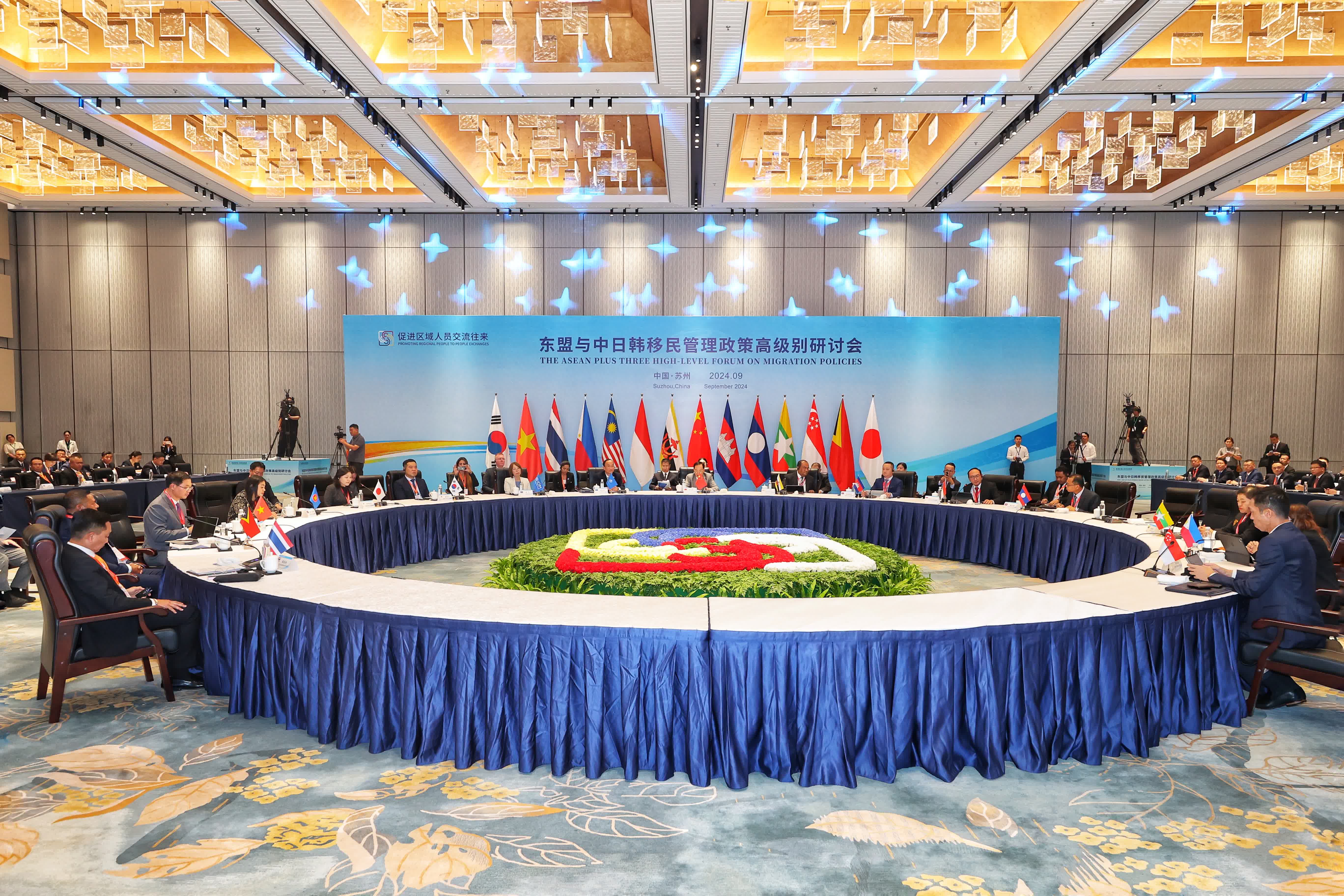 東盟與中日韓移民管理政策高級別研討會以「構築更加緊密的移民政策交流紐帶,共同促進域內各國安全與發展」為主題,是中國國家移民管理局落實第25次東盟與中日韓領導人會議共識,以及《東盟與中日韓合作工作計劃(2023-2027)》的重要舉措。汶萊、柬埔寨、印度尼西亞、和日本、韓國、中國的移民部門代表,東盟秘書處、國際移民組織、瀾湄執法合作中心有關官員參加會議,與會代表就當前地區移民治理形勢及共同關心的問題進行了發言討論,並就地區移民治理政策提出建議。