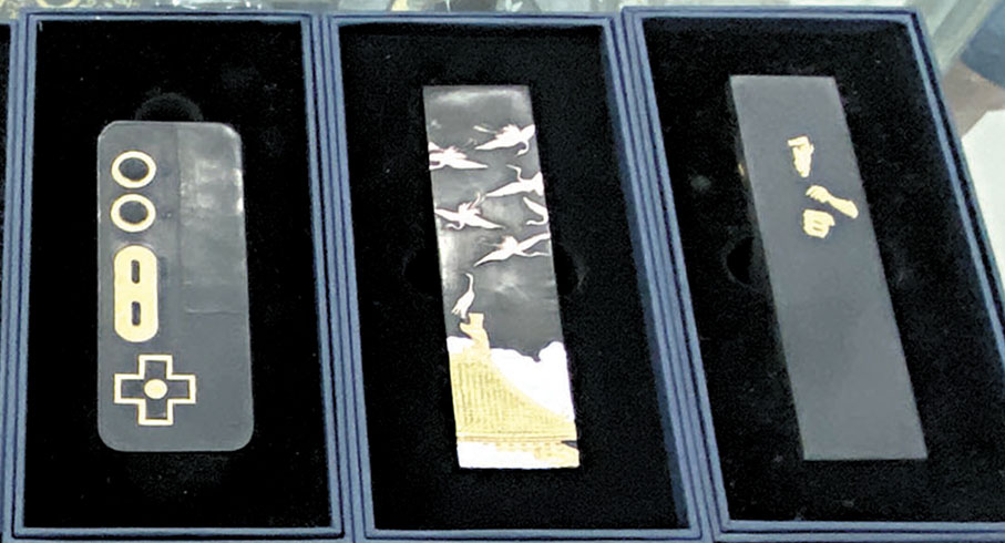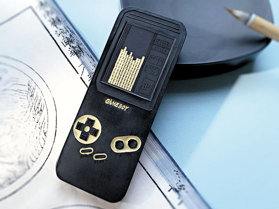 「把我們生活的這個時代的元素,加入到作品當中,我覺得可能是每一個傳統技藝傳承人的社會責任和歷史責任。」項頌邊說,邊從展櫃裏拿出自己創作的一款最新式樣的徽墨——只見長方形塊狀的徽墨上是嬉魚燈,今年最流行的徽文化IP之一。而除了這一款,項頌已前後製出月球環形山、復古遊戲機、卡通貓爪印等圖樣豐富、富有新奇潮流元素的徽墨。「現在消費主力主要還是40歲以上的人群,但從這幾年(市場行情)來說,來我們這邊研學的年輕人從大學生、中學生到小學生都有,他們看到新式的墨會很喜歡,有些人就會購買帶走。」