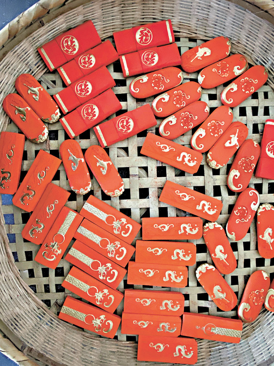 歷史在發展前進,徽墨從千年前的唐宋一路走來,亦需擁抱時代、擁抱創新。項頌告訴記者,現今徽墨的需求已成為小眾市場,並朝着定製化、高端化方向發展,尤其是徽墨的收藏價值愈發突出。在製作方面,隨着熬膠、錘墨等流程採用新式機械替代人力後,徽墨傳承的核心更聚焦到外觀的創新上。他補充說,目前自己考慮了兩條徽墨的創新方向,一是將現代年輕元素融入墨模設計,另外就是對傳統中國元素進行發掘創新。比如,今後可能會加入青銅器紋路、中國傳統服裝紋飾等融入到自己的作品中,但又與父親那一輩追求技法上的繁瑣不同。他認為,現代藝術設計有追求簡潔的趨勢,太過繁瑣的圖案不符合當下人的審美。因此,他正着力設計精簡圖樣,力求讓徽墨具有濃厚的中國味道,同時又具有鮮明的時代印記。
