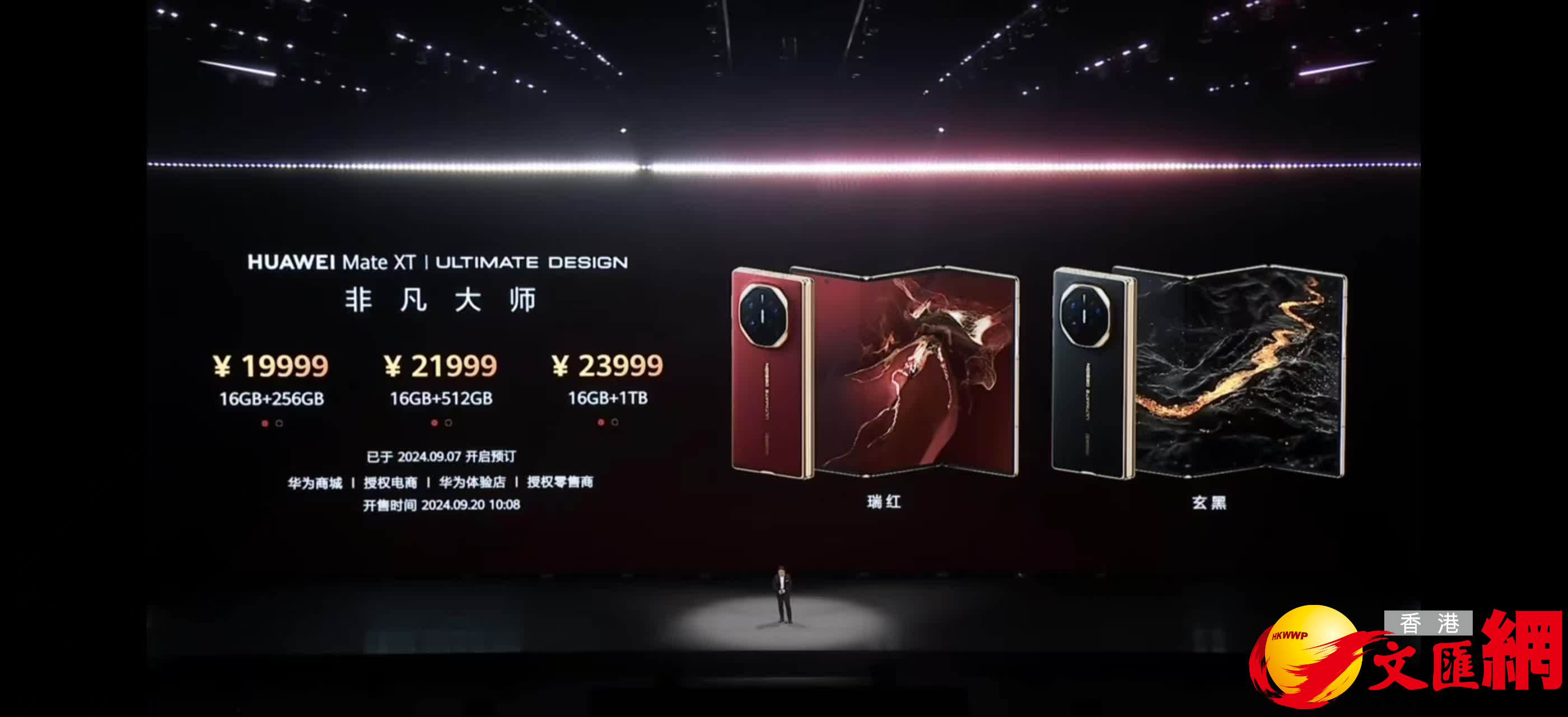 9月10日下午,華為見非凡品牌盛典及鴻蒙智行新品發布會在深圳召開。華為正式推出全球首款三摺疊屏手機Mate XT非凡大師,售價19999元起。其中,16GB+1TB版本售價達23999元,創下華為手機史上最貴的紀錄。華為常務董事、終端業務董事長、智能汽車解決方案BU董事長余承東表示,華為再次改寫行業歷史,將科幻變成現實。「做出樣機非常容易,但量產非常難。屏幕和鉸鏈的技術的突破,是將科幻變成現實的關鍵,華為首創天工鉸鏈系統。」 該款手機首創華為天工鉸鏈系統,第一次讓精密鉸鏈系統實現內外彎折,雙軌聯動,巧奪天工;首發超形態三摺疊大屏,從容應對內外彎折,實現雙重抗沖,以柔克剛;打破了移動終端的場景邊界,一機多能,科技新物種。