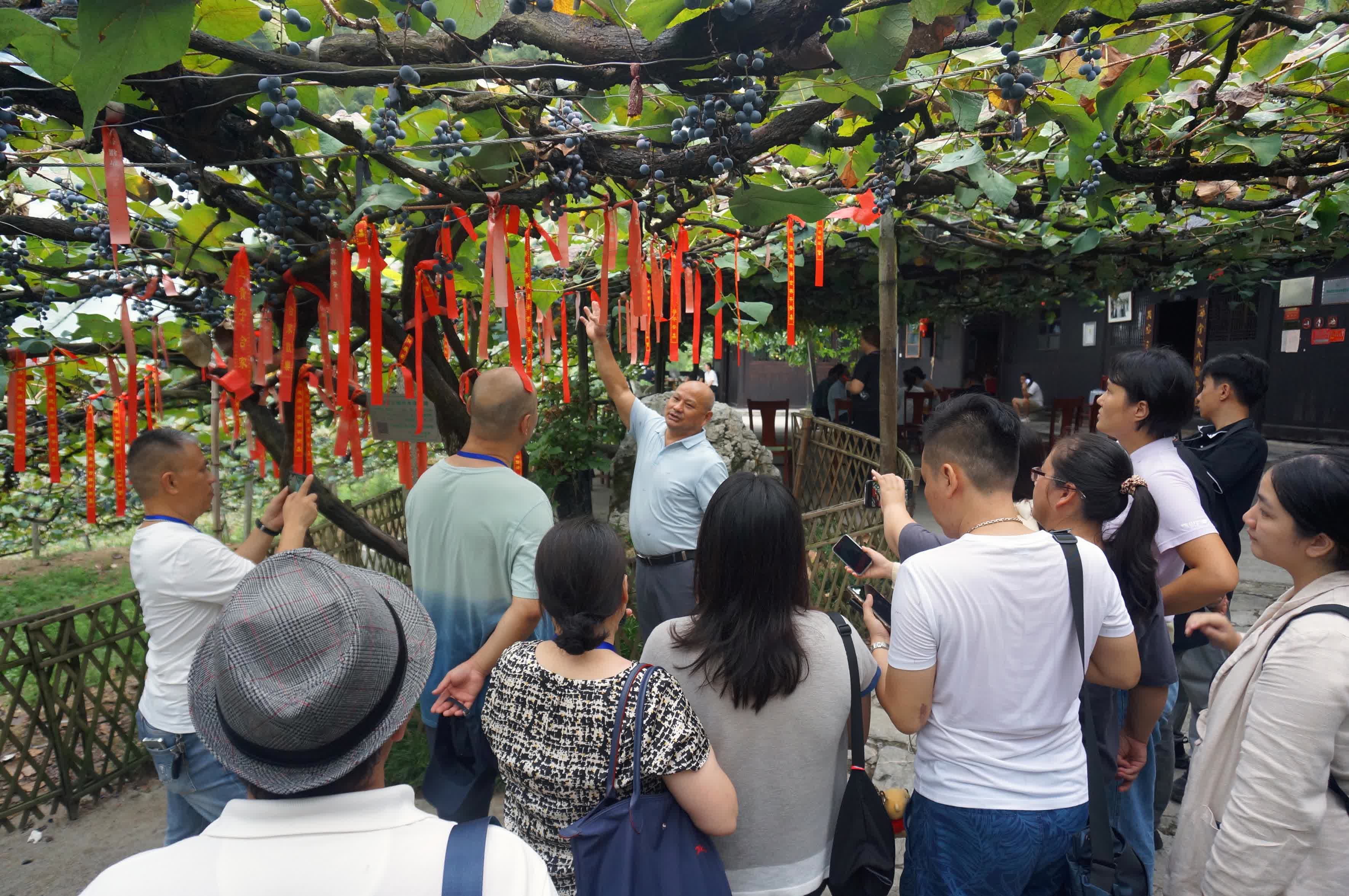 採訪團一行來到桐木鎮大松坡村「南方葡萄溝」,葡萄溝裏人來車往,熱鬧非凡,各類品鑒、觀賞、娛樂活動如火如荼。