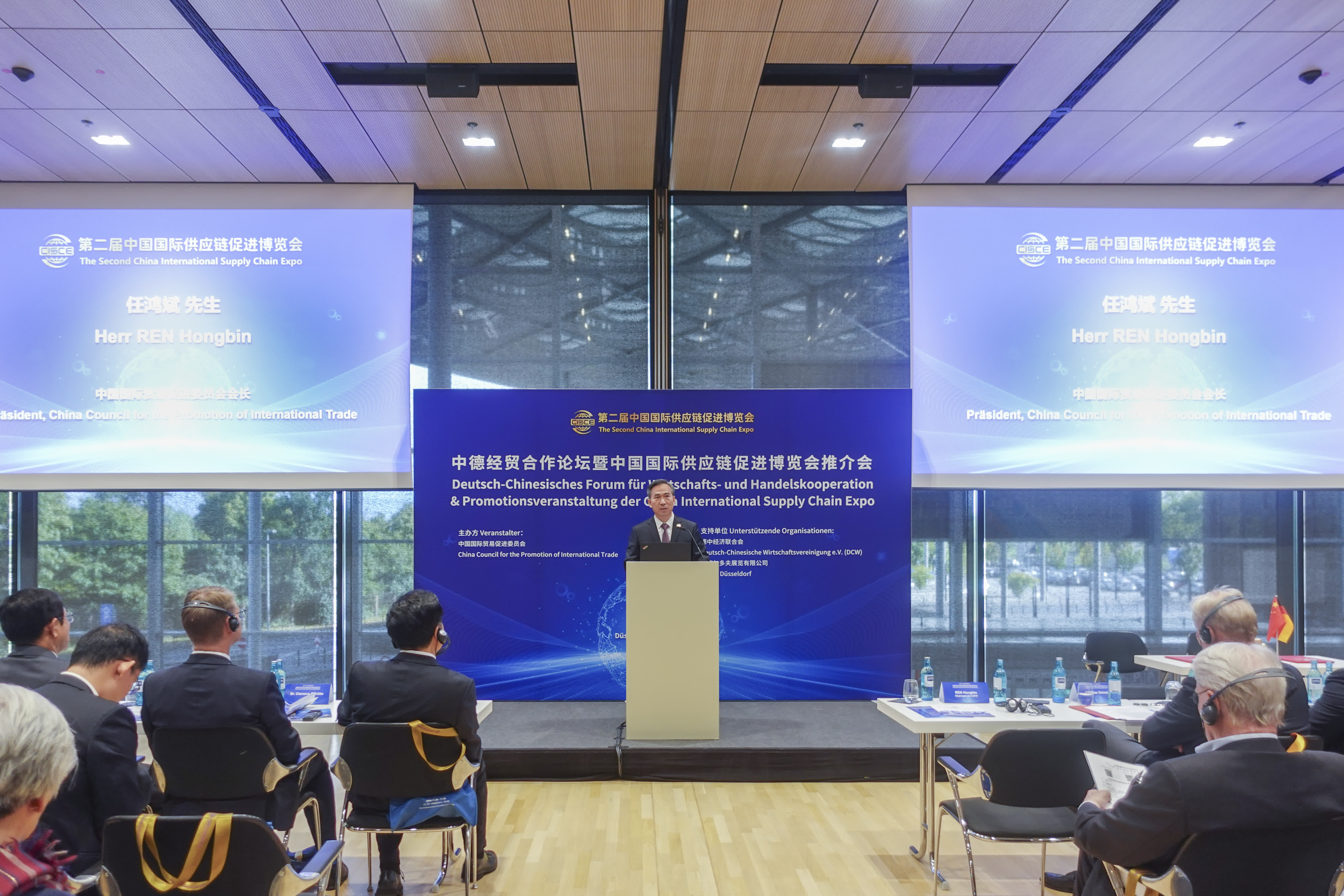 (香港文匯網記者 孫志)記者從中國貿促會獲悉,2024年9月11日,在中國貿促會會長任鴻斌率中國企業家代表團訪問德國期間,中德經貿合作論壇暨中國國際供應鏈促進博覽會推介會在杜塞爾多夫成功舉辦。中國貿促會會長任鴻斌,中國駐杜塞爾多夫總領事杜春國,杜塞爾多夫工商會主席、德中經濟聯合會顧問委員會主席施密茨等出席活動並致辭。